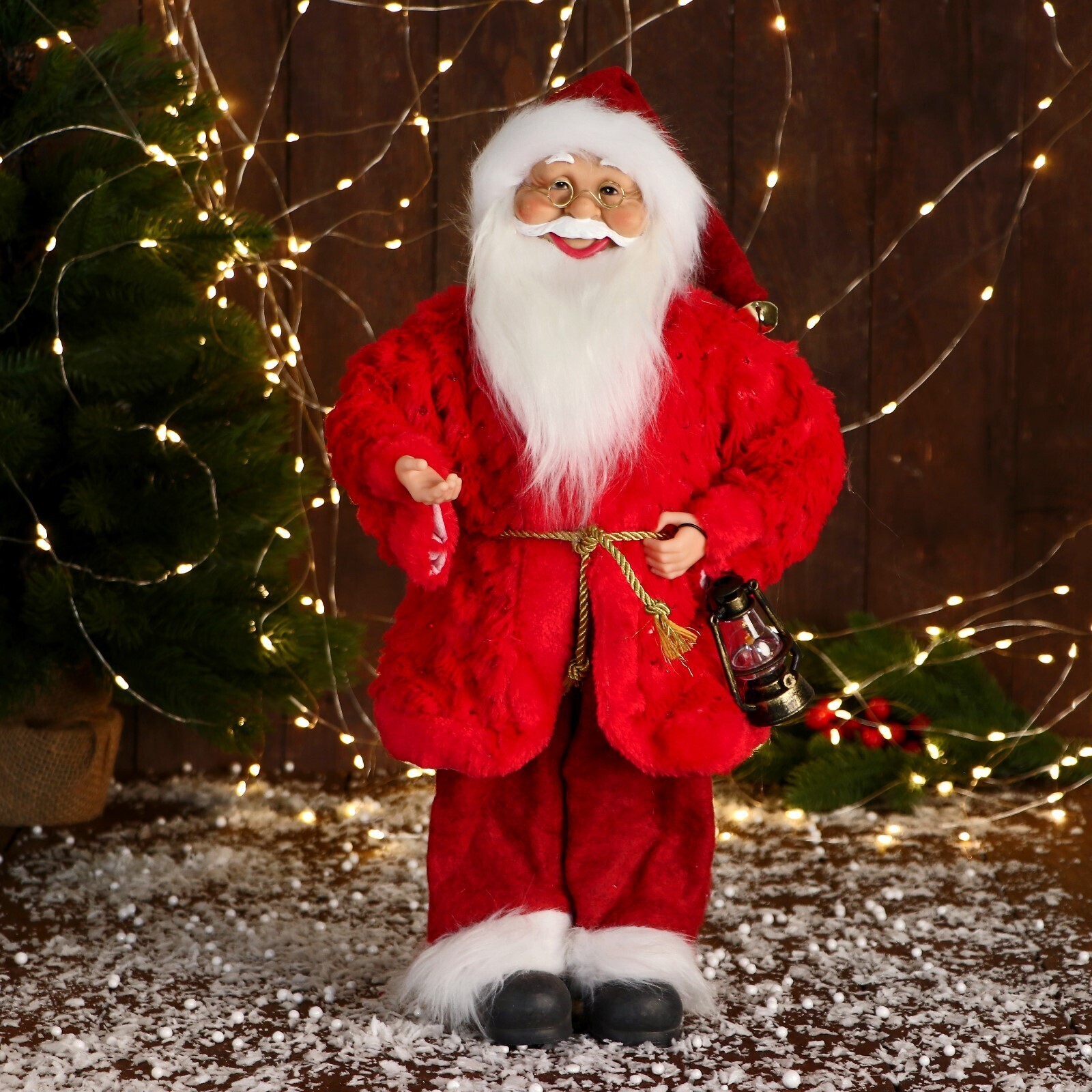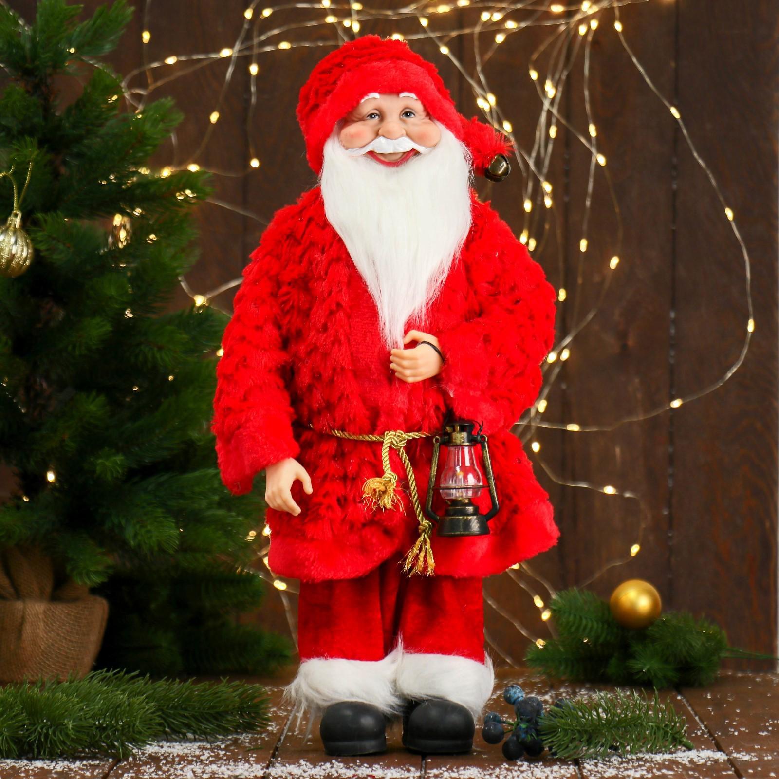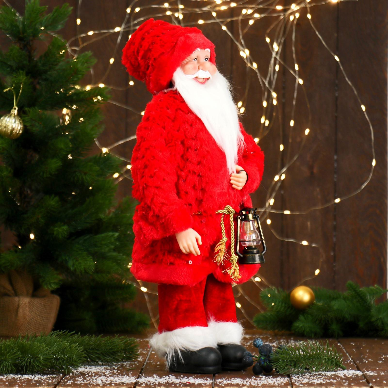 Дед Мороз "В красной шубе с пояском, с фонариком" 25х45 см