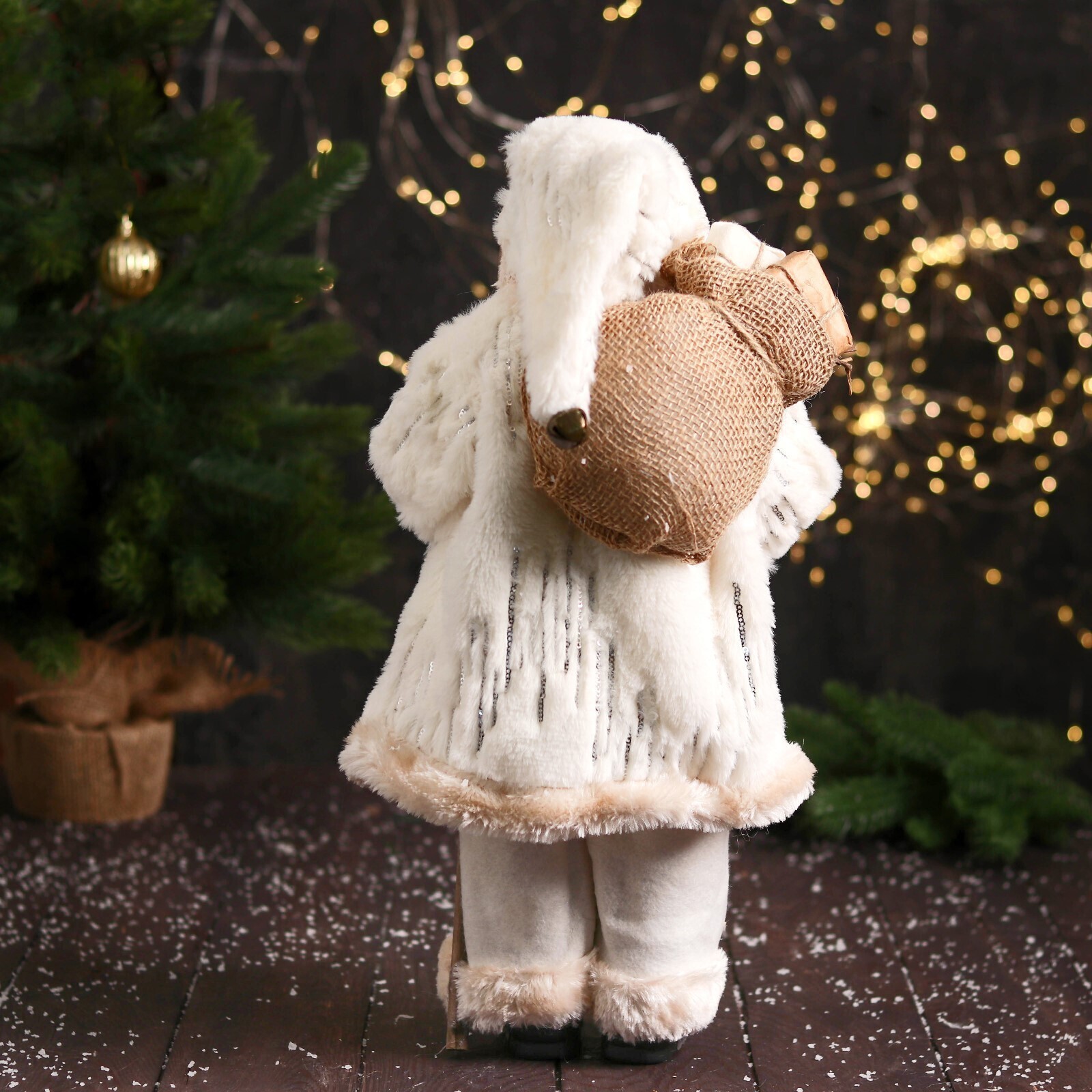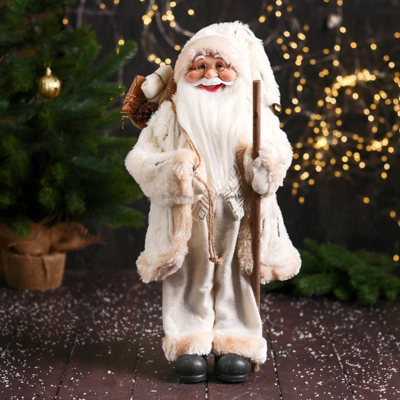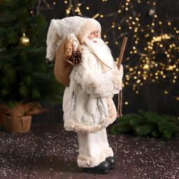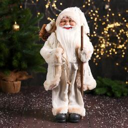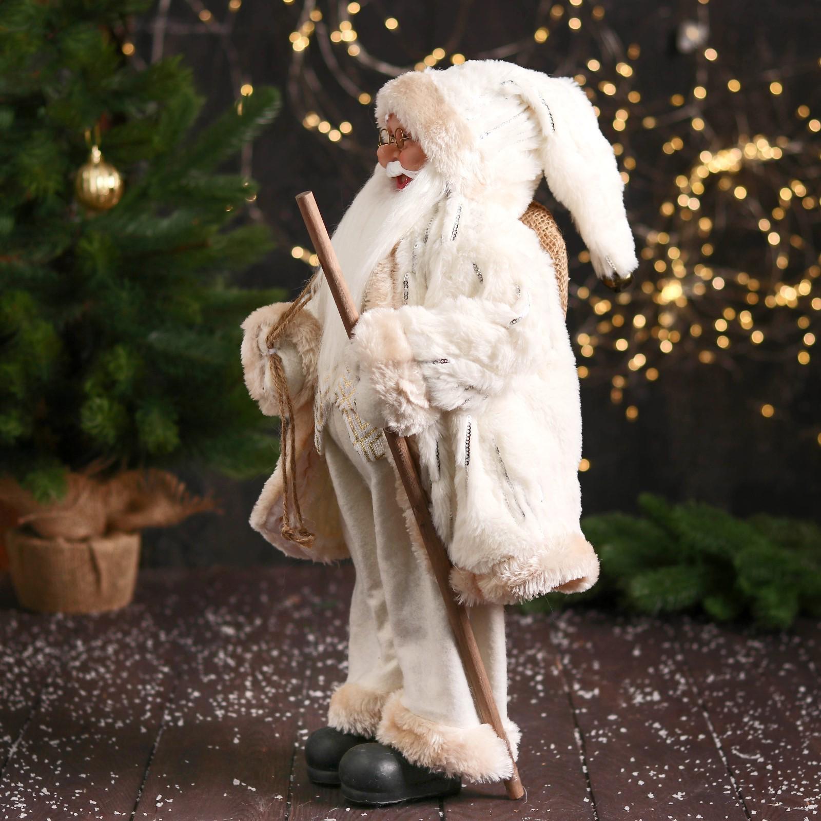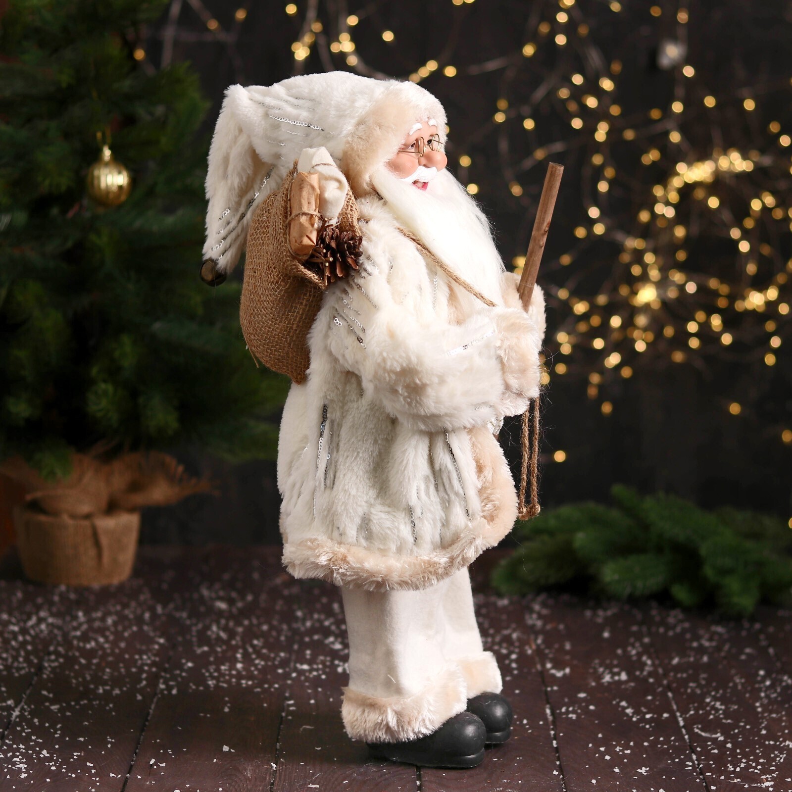 Дед Мороз "В пушистой шубе, посохом и мешком" 47 см, белый