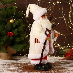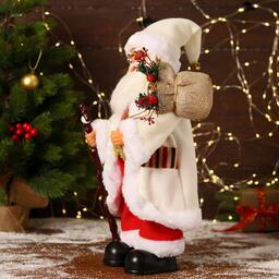 Дед Мороз "В белом костюмчике с орнаментом, с посохом" двигается, 20х40 см