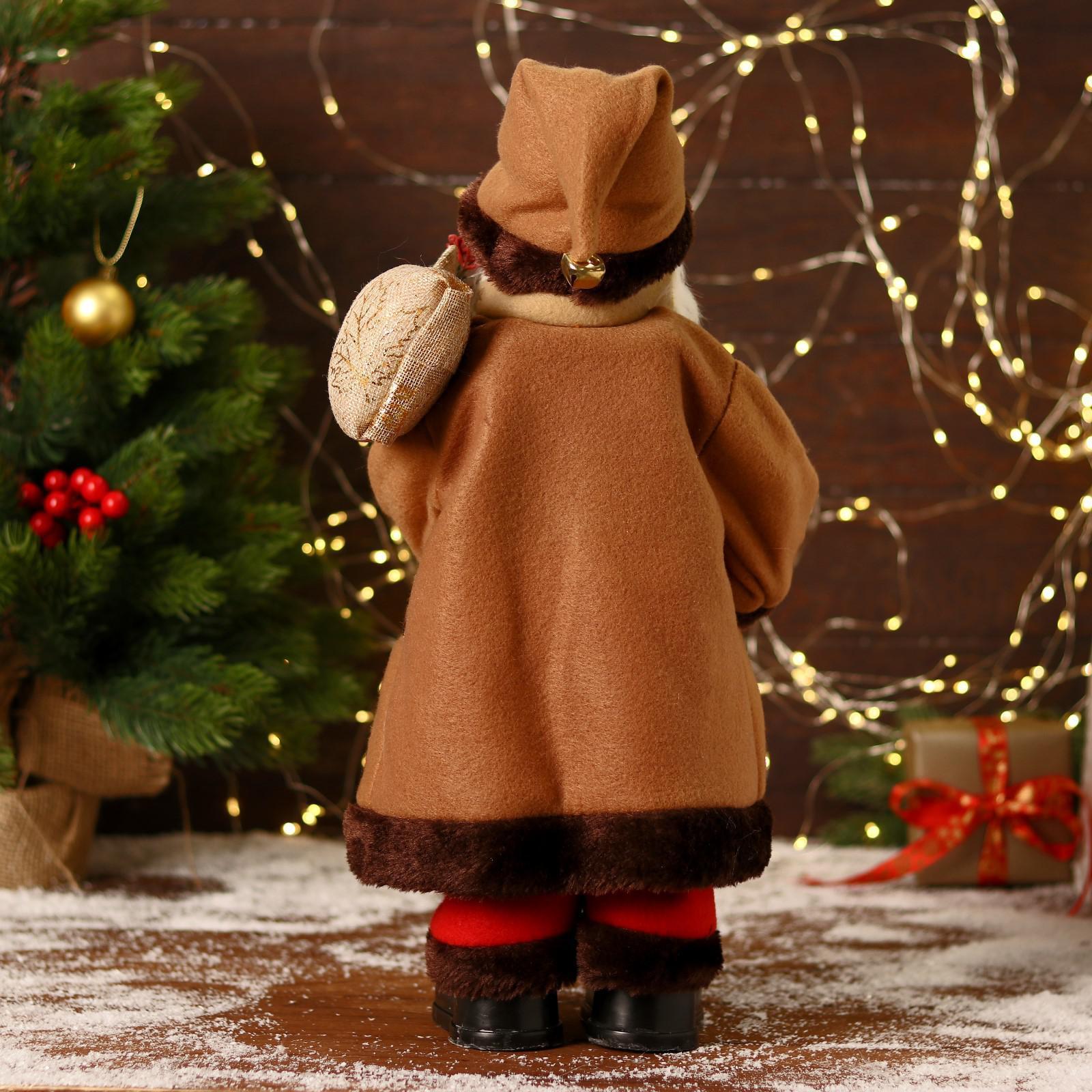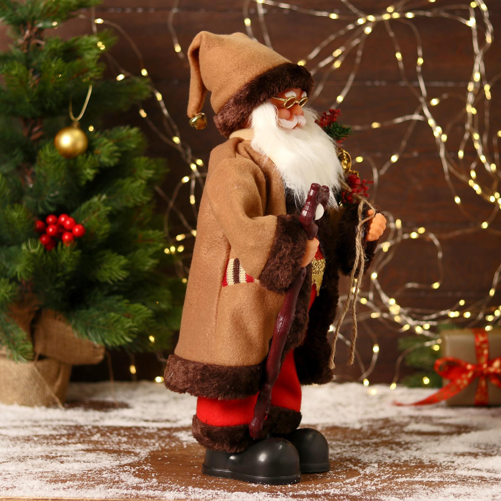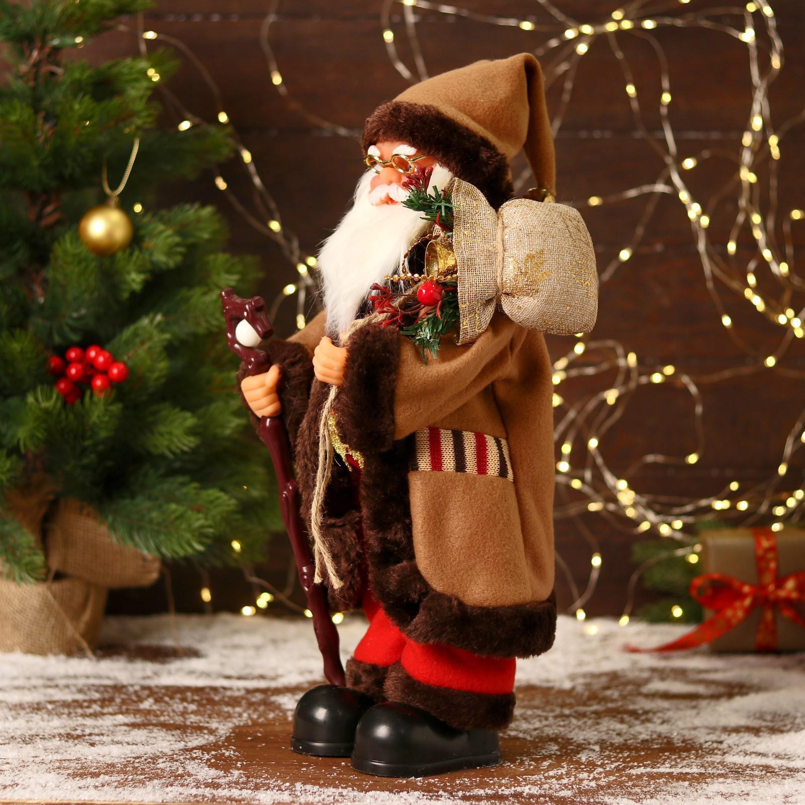 Дед Мороз "В коричневой шубке, с посохом" двигается, 20х40 см