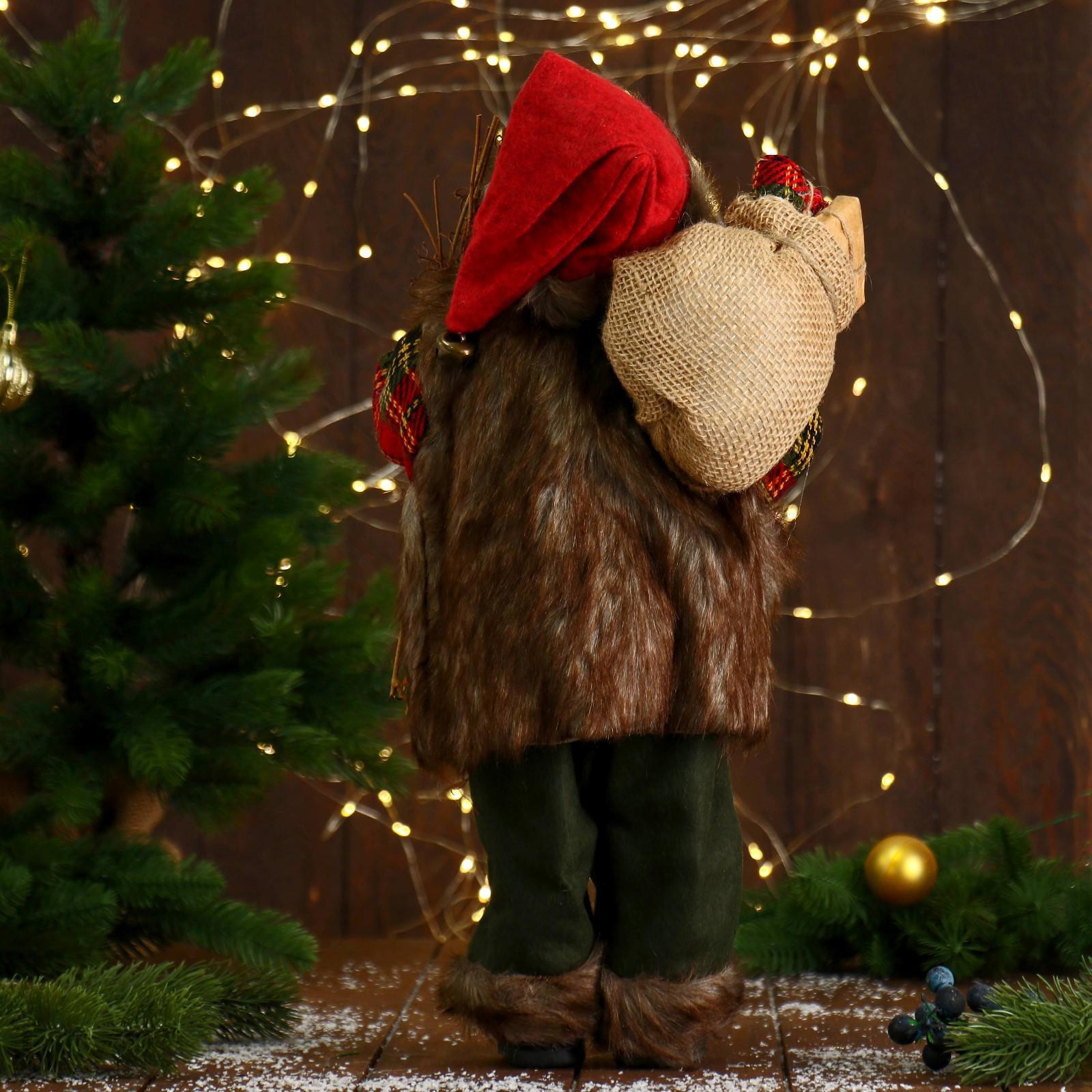 Дед Мороз "В пушистой жилетке, с веточками" 45 см