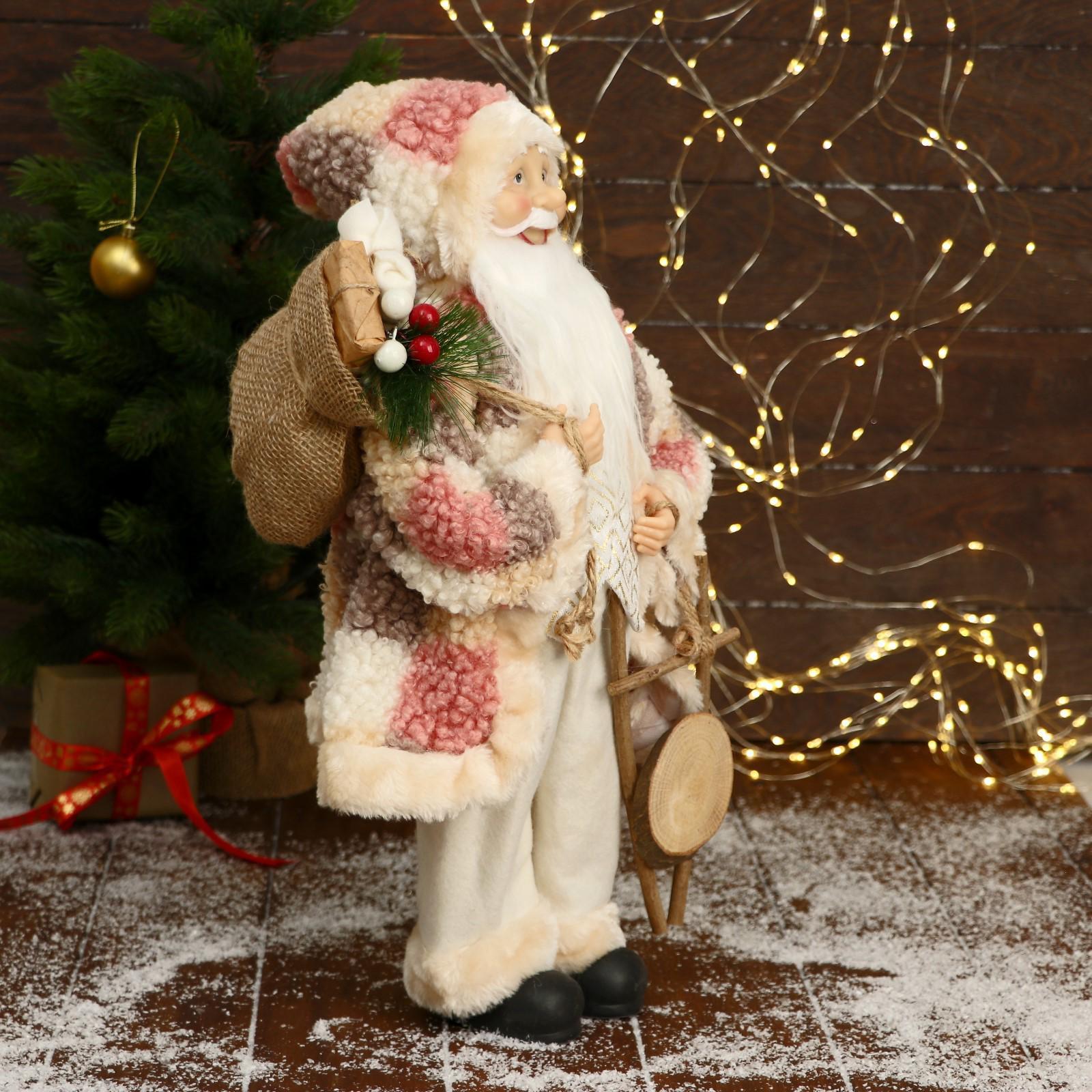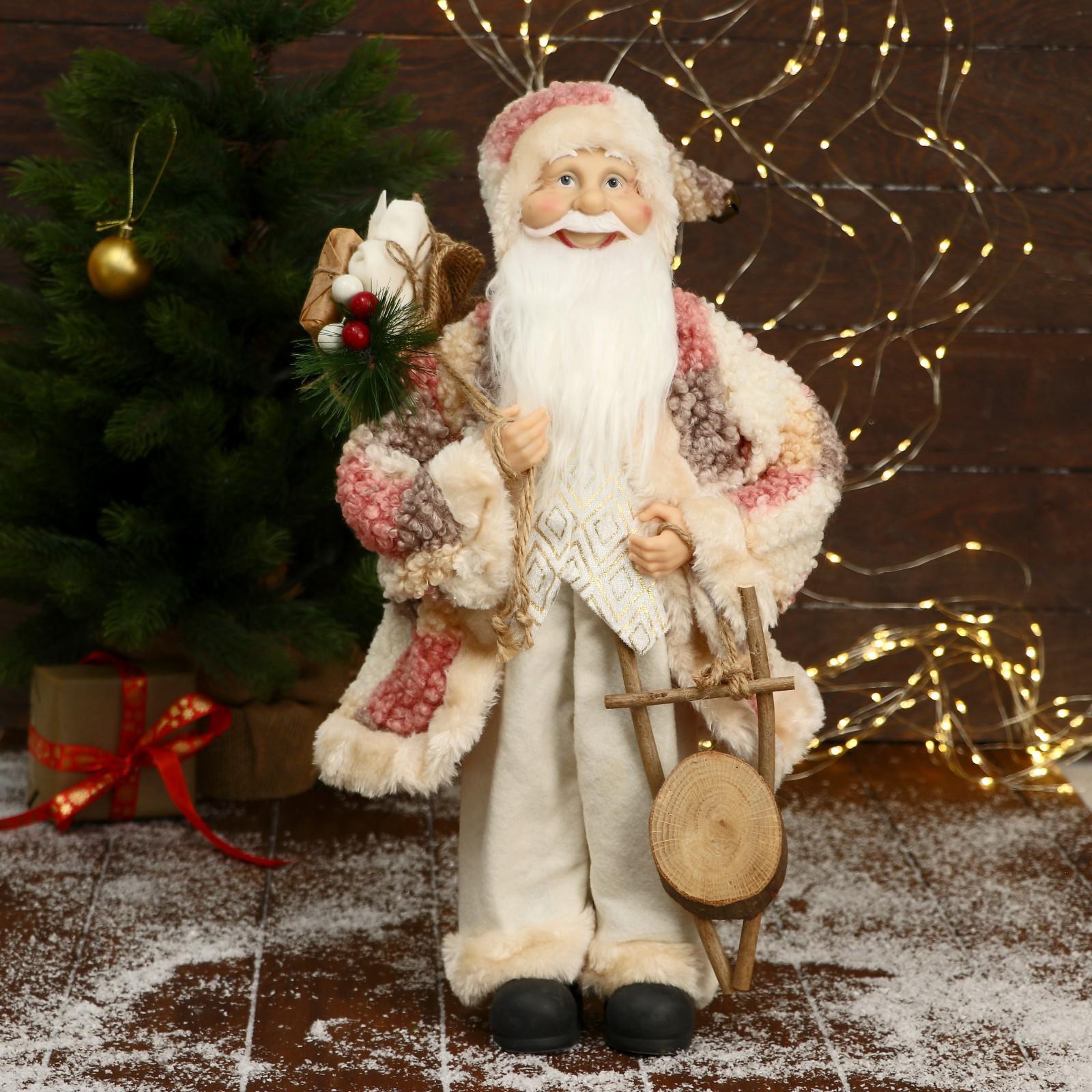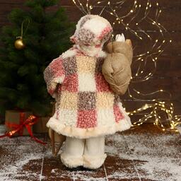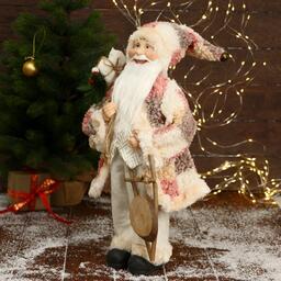 Дед Мороз "В клетчатой шубе, кофте ромбик, с подарками" 25х45 см