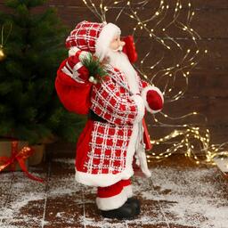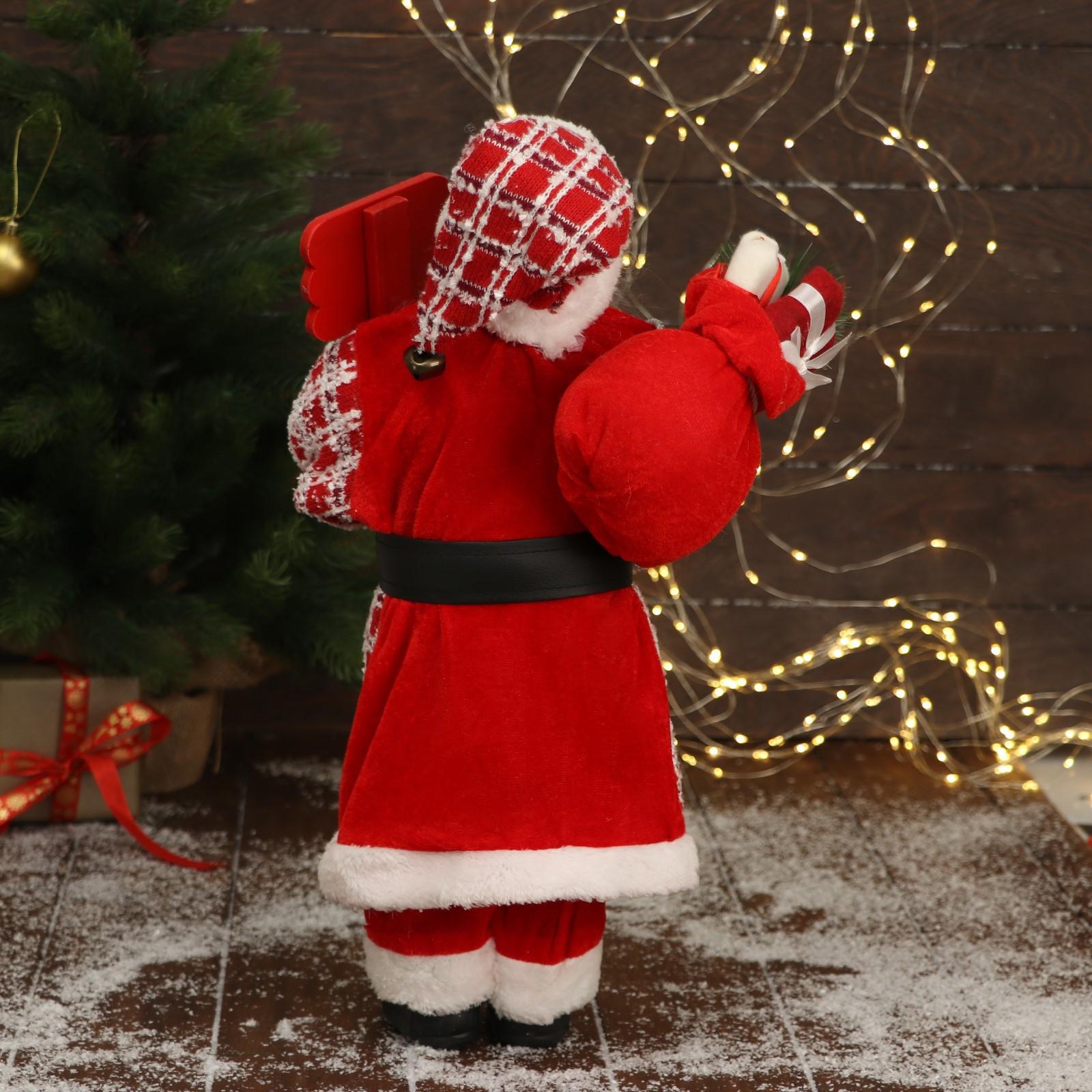 Дед Мороз "В красной клетчатой шубе, с табличкой и подарками" 25х45 см