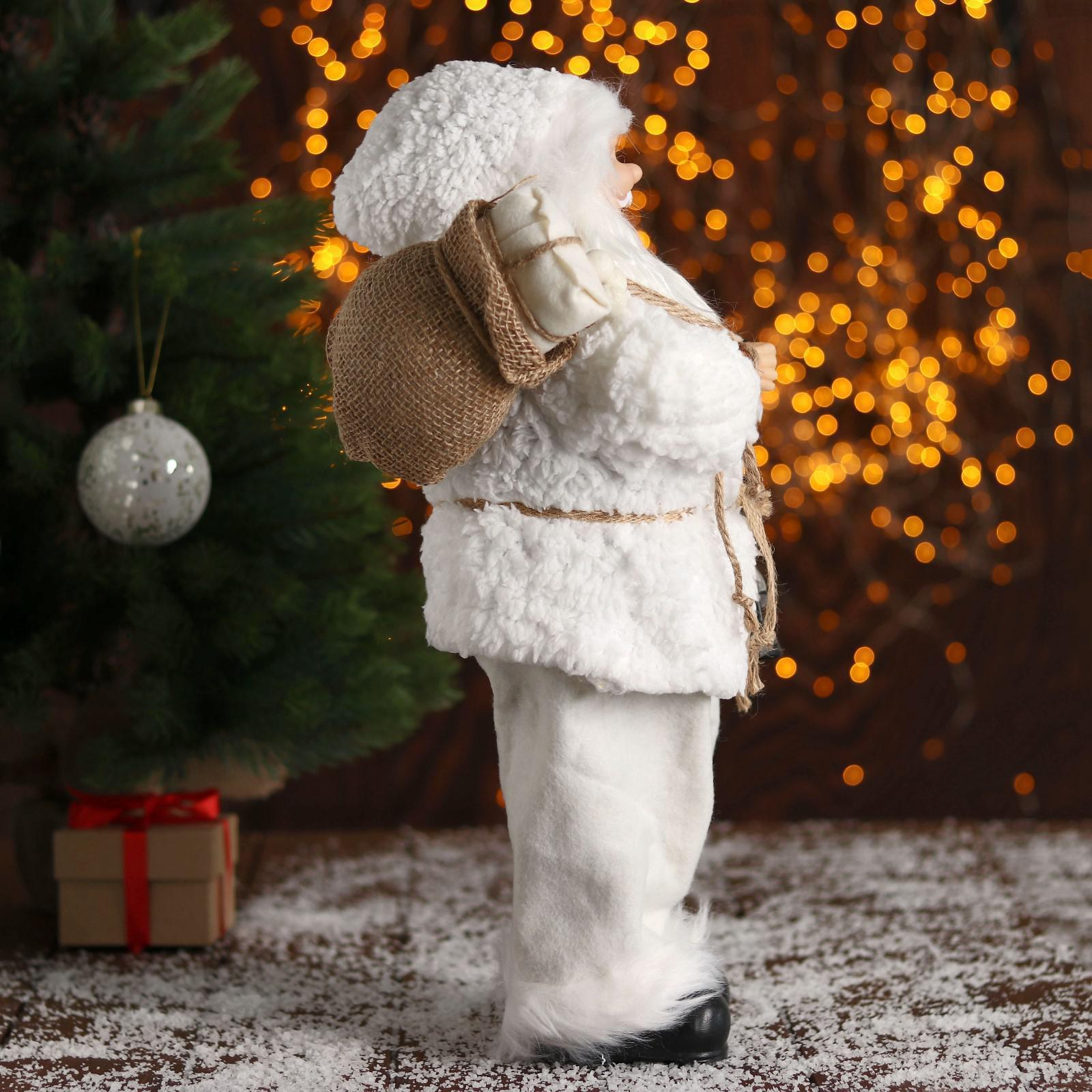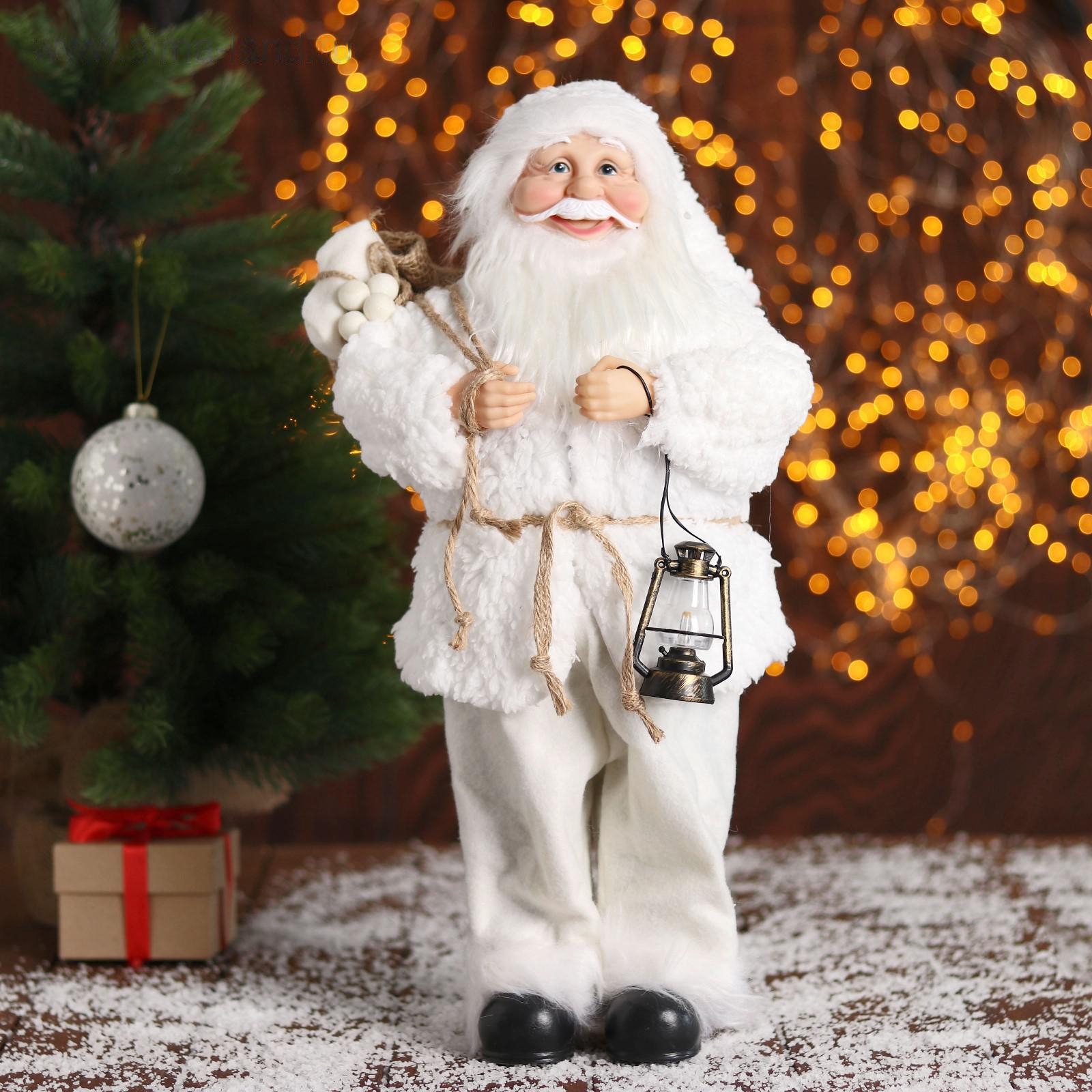 Дед Мороз "В белой шубке, с фонариком" 43 см