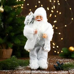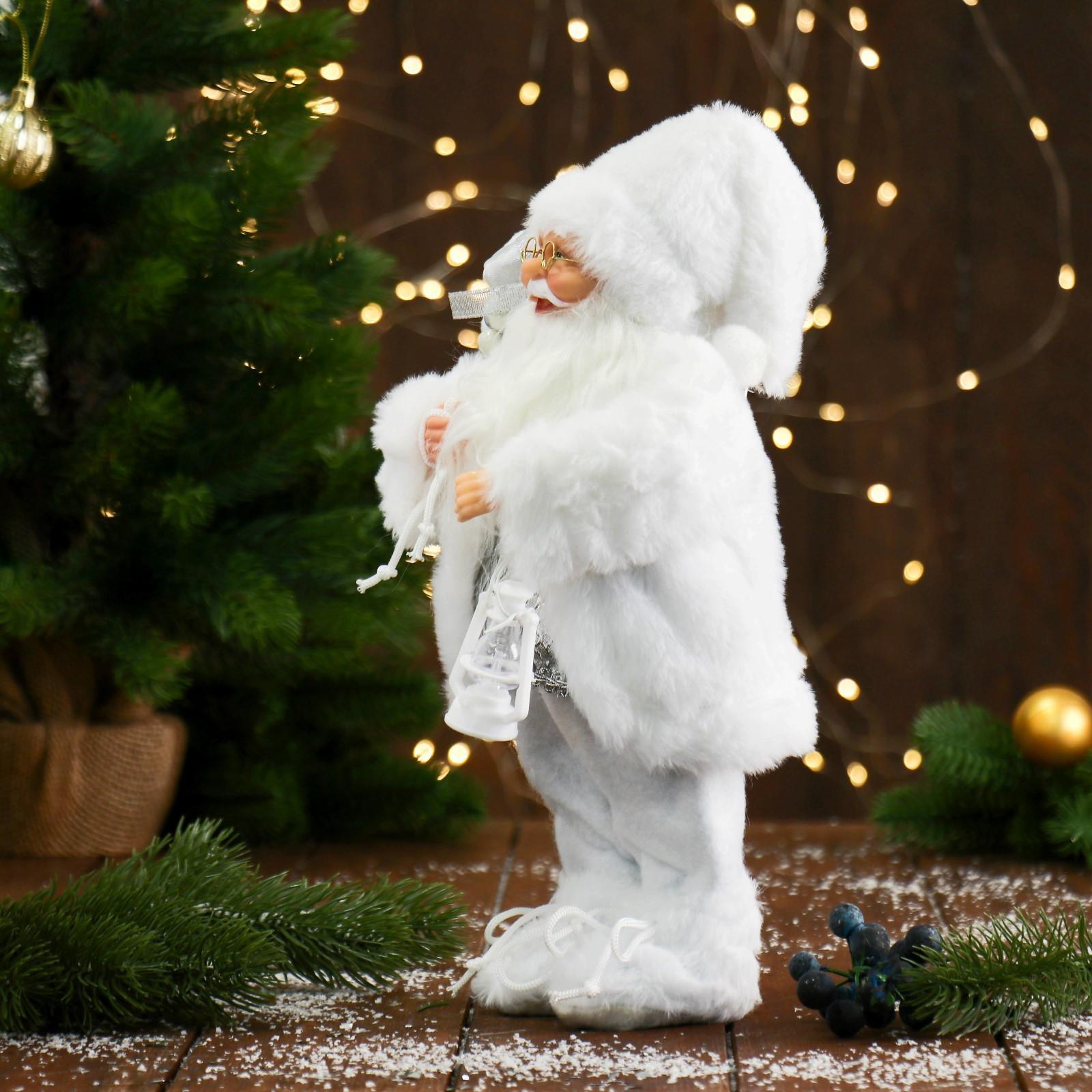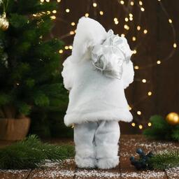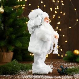 Дед Мороз "В белой шубке, с фонариком и подарками" 30 см