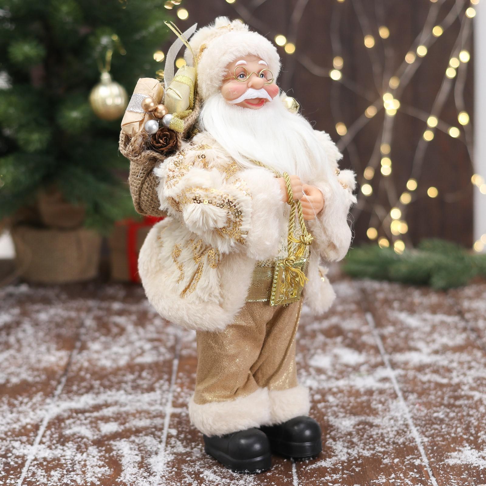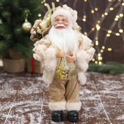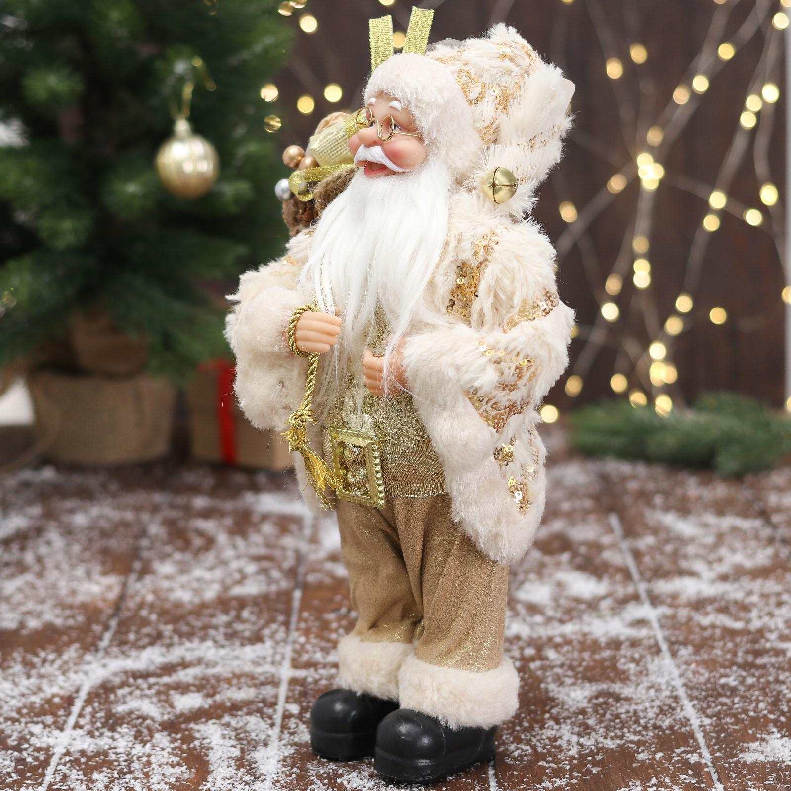 Дед Мороз "В бело-золотистом костюме блеск, с подарками" 15х30 см