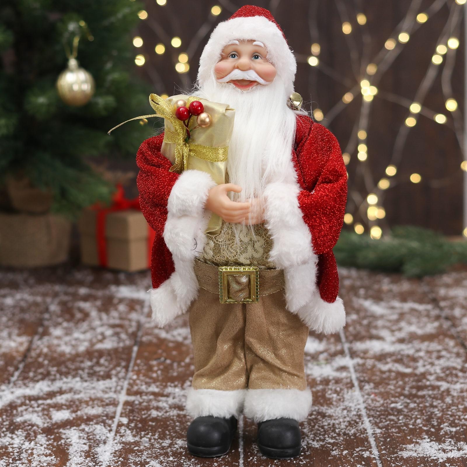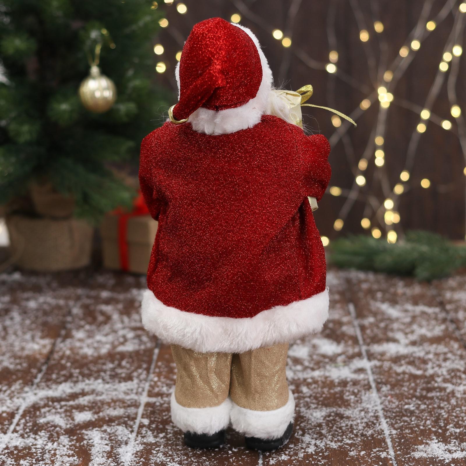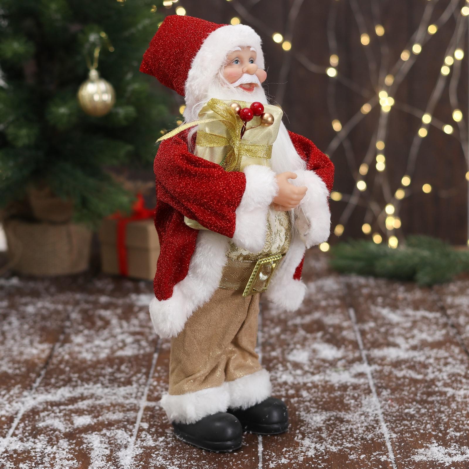 Дед Мороз "В золотисто-красном костюме, с ремешком, с подарками" 15х30 см