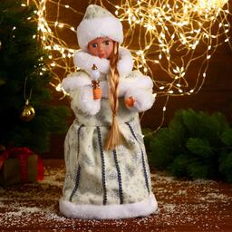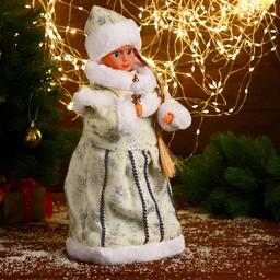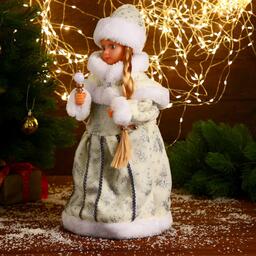 Снегурочка "Белая шубка с посохом" двигается, 40 см