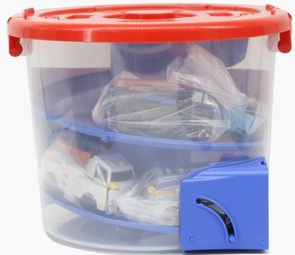 Ігровий набір Автотрек-відро з машинками (6 штук). Матеріал: АБС-пластик, поліпропілен. Розмір машинок: 8 см. Розмір відра: 22х22х16.5 см.