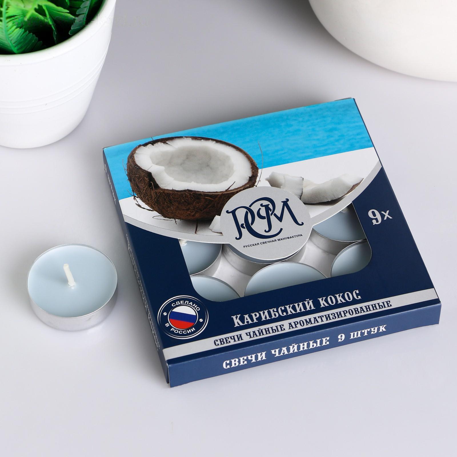 Набор чайных свечей ароматизированных "Карибский кокос", 10гр, 9штук