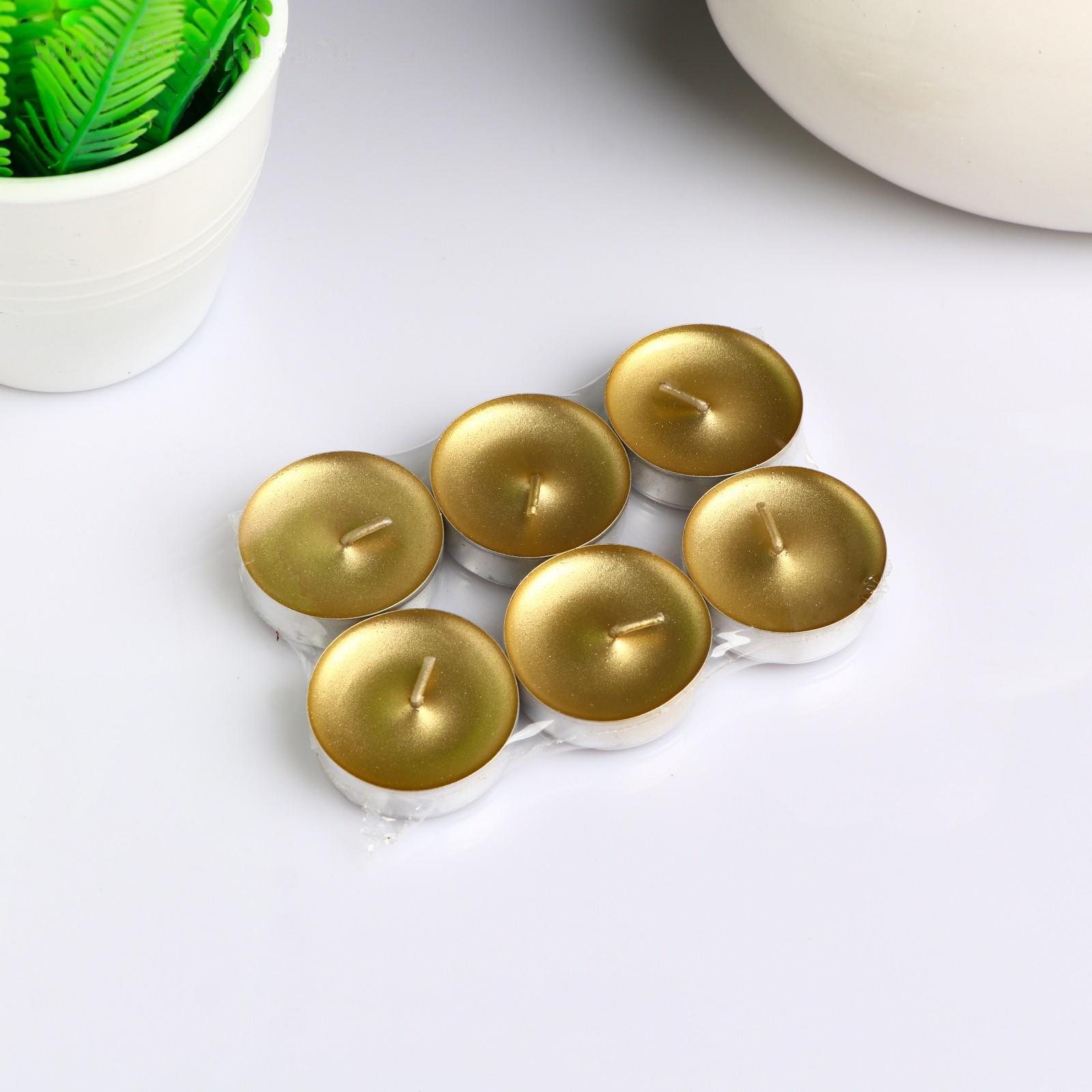 Свеча в гильзе "Шайба", Золото, 6 шт