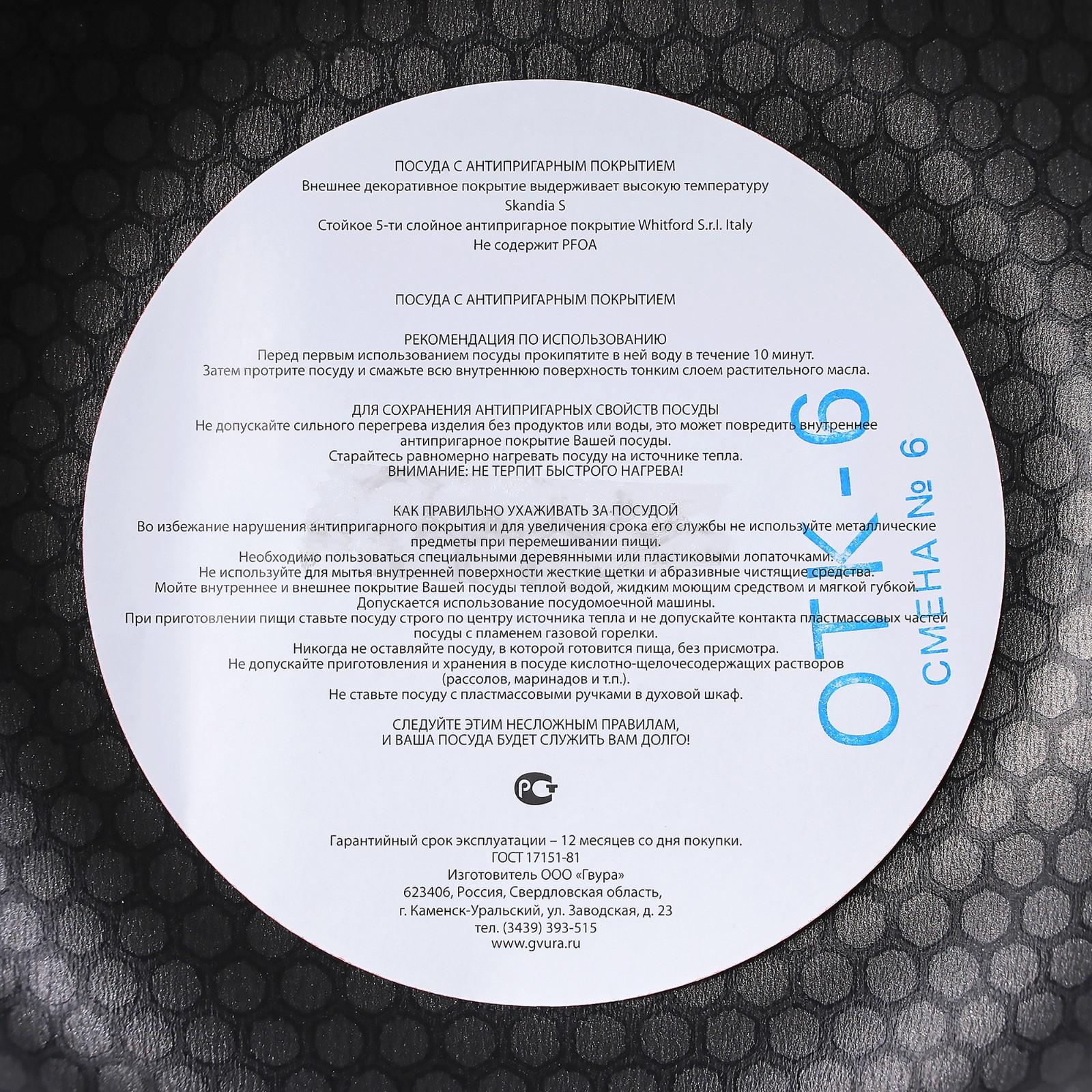Сковорода подходит для газовых, электрических и стеклокерамических плит.