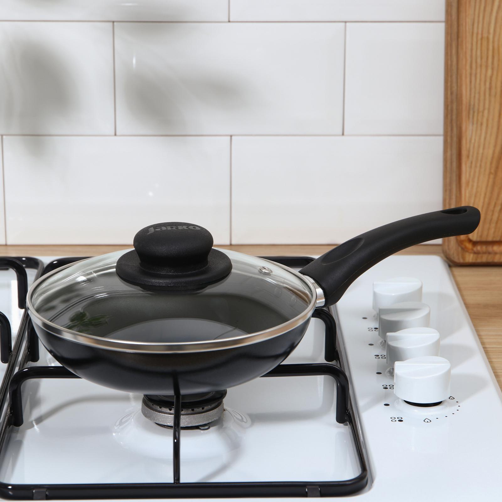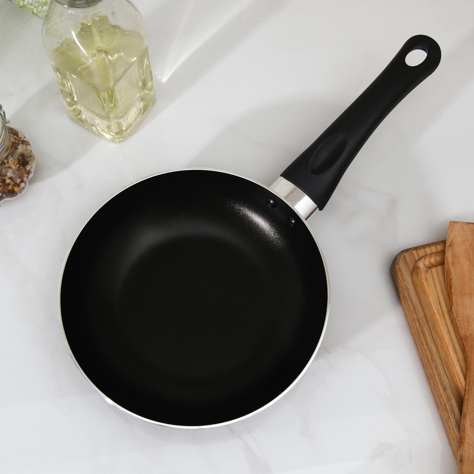 Сковорода Lite, d=18 см, пластиковая ручка, стеклянная крышка, антипригарное покрытие, цвет чёрный