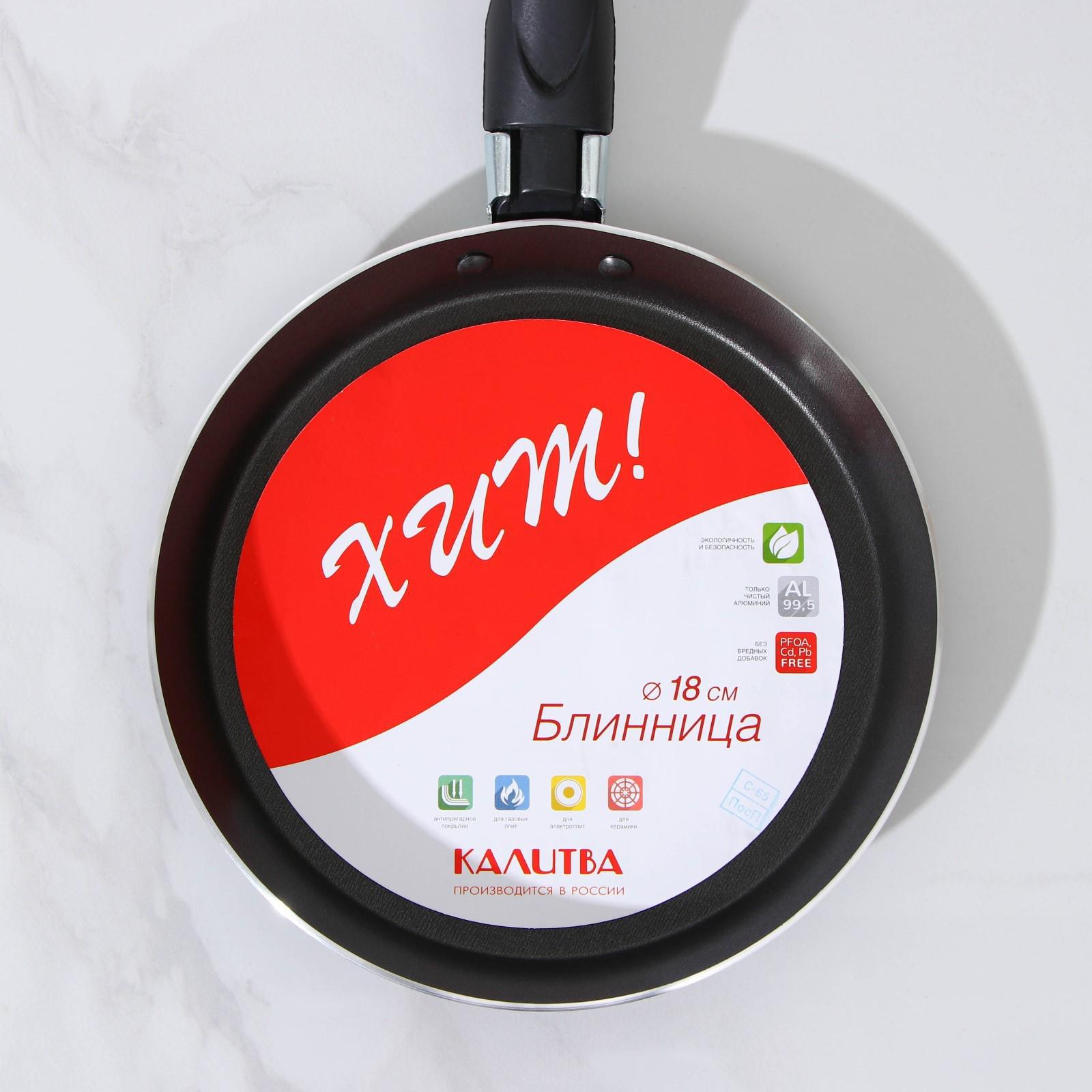 Сковорода блинная «Хит», d=18 см, пластиковая ручка, антипригарное покрытие, цвет чёрный