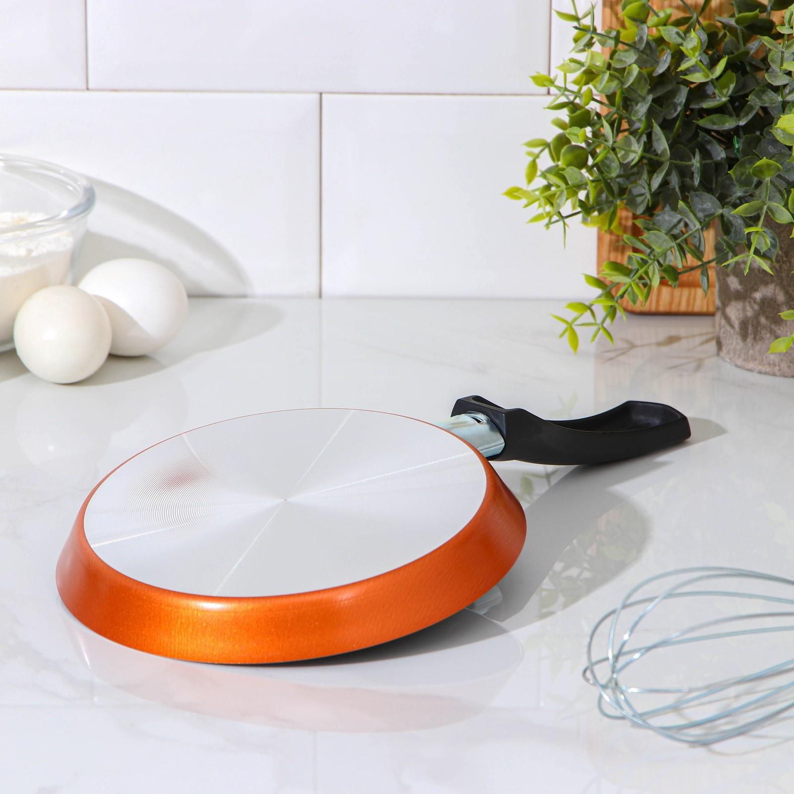 Сковорода блинная «Шёлк», d=18 см, пластиковая ручка, антипригарное покрытие, цвет оранжевый