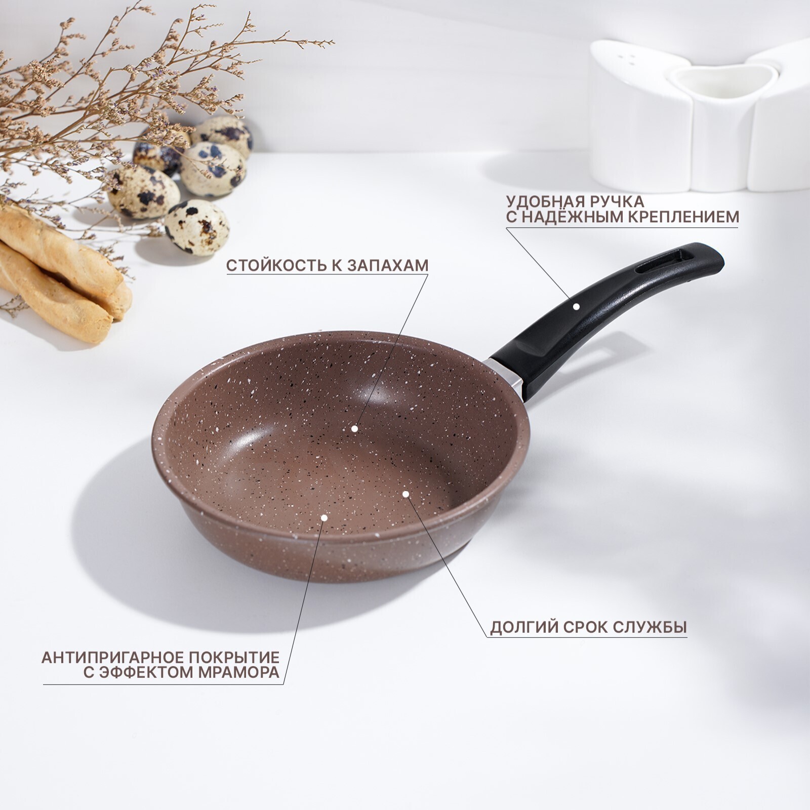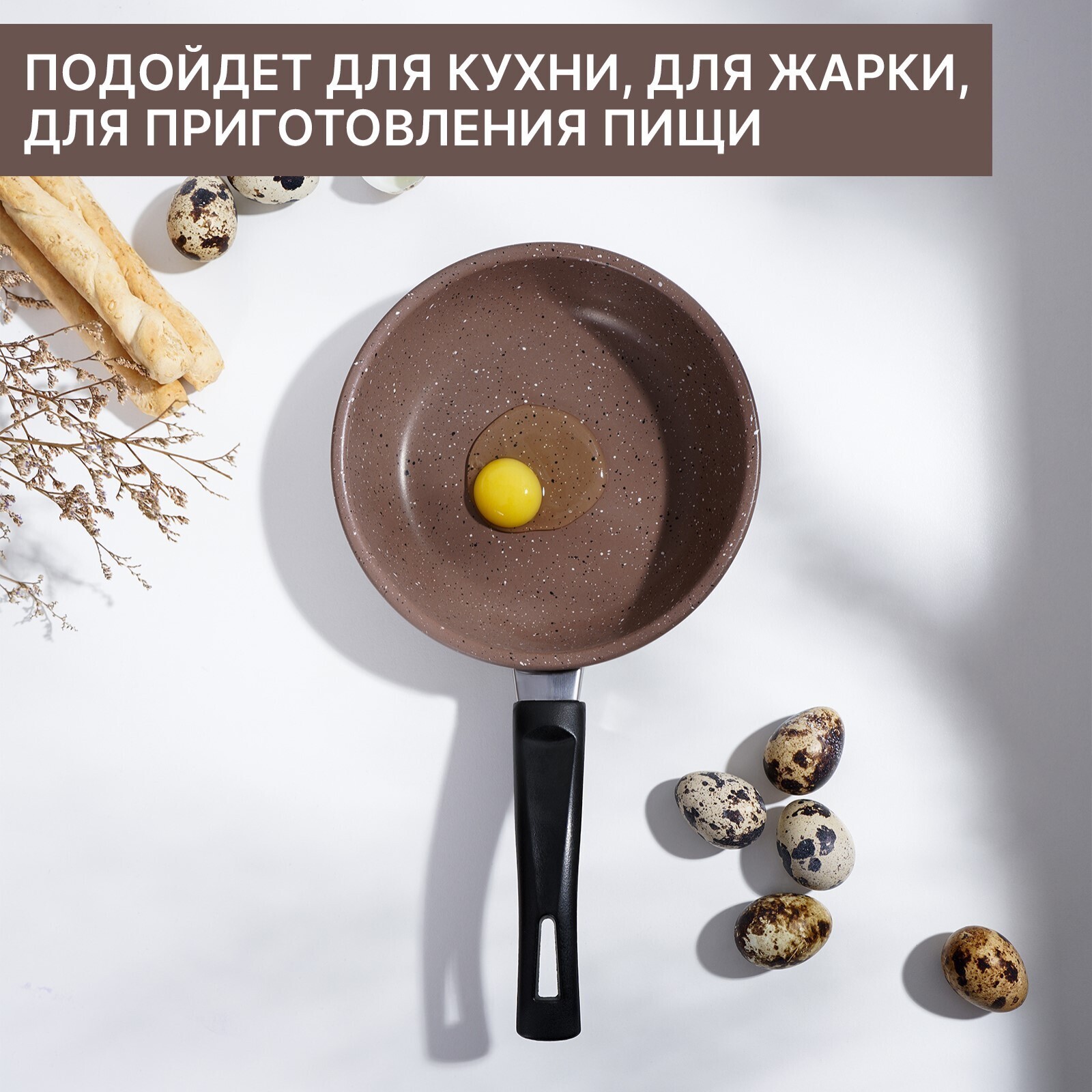 Сковорода Rock, d=15 см, пластиковая ручка, антипригарное покрытие, цвет коричневый