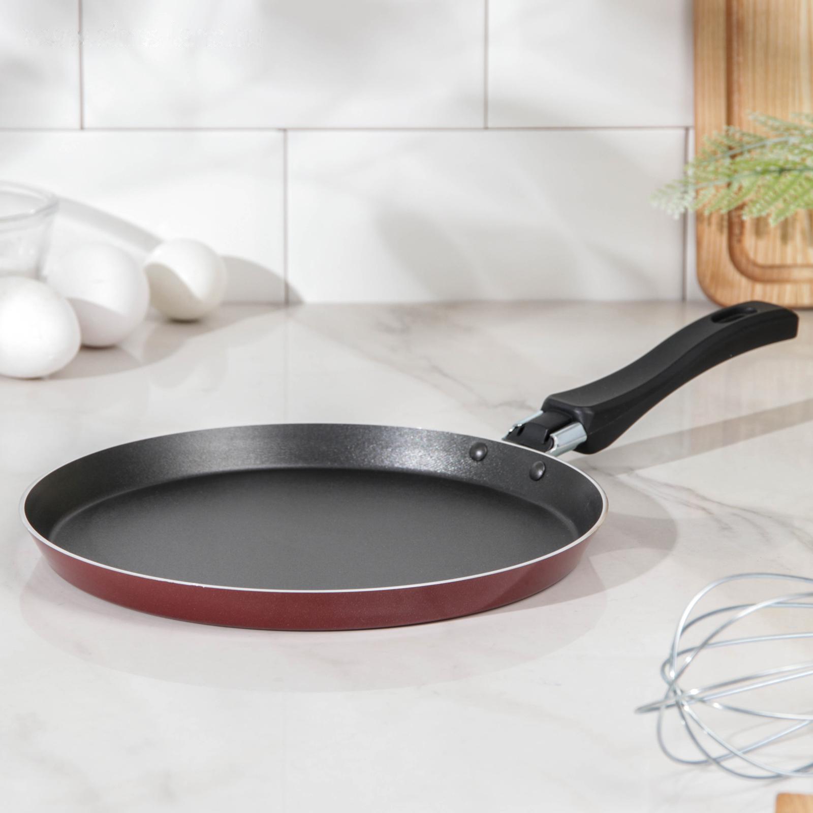 Сковорода блинная «Эксперт», d=22 см, пластиковая ручка, антипригарное покрытие, цвет бордовый