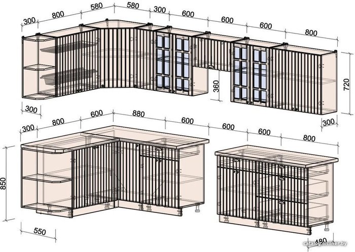 - Высота нижних шкафов 55 см