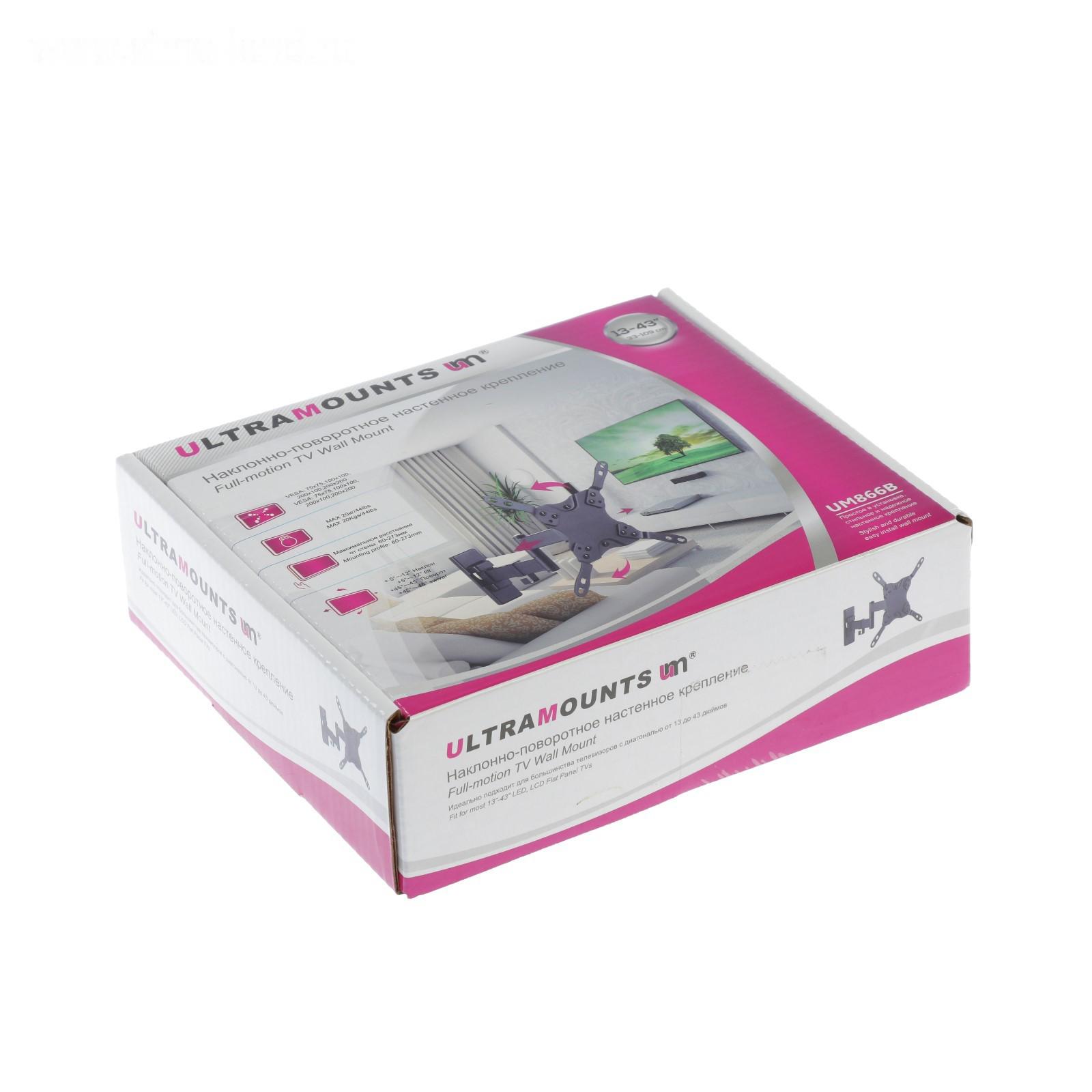 Кронштейн Ultramounts UM866B, для ТВ, наклонно-поворотный, 13-43",60-273 мм от стены, черный