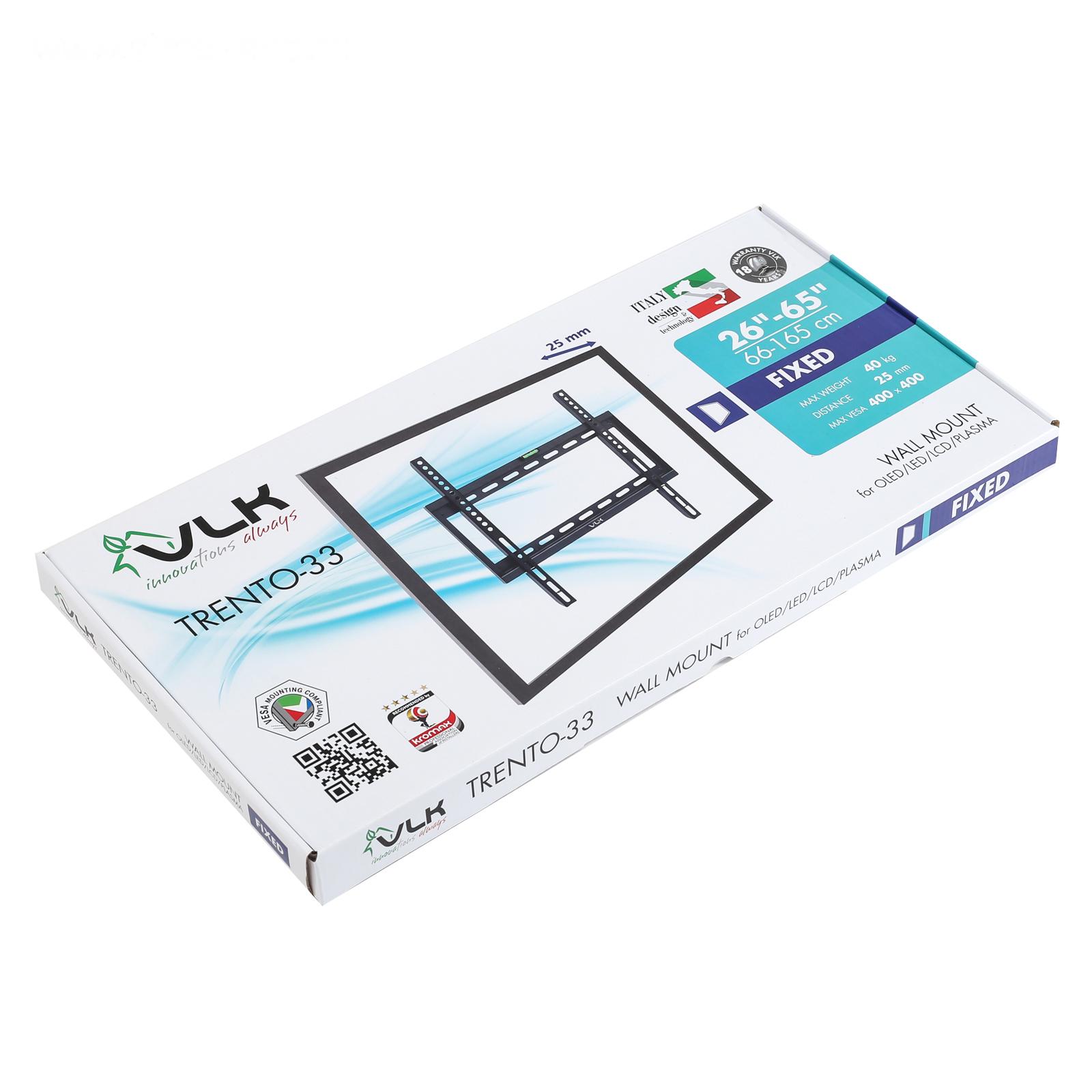 Кронштейн VLK TRENTO-33, для ТВ, фиксированный, 26-65", 26 мм от стены, черный