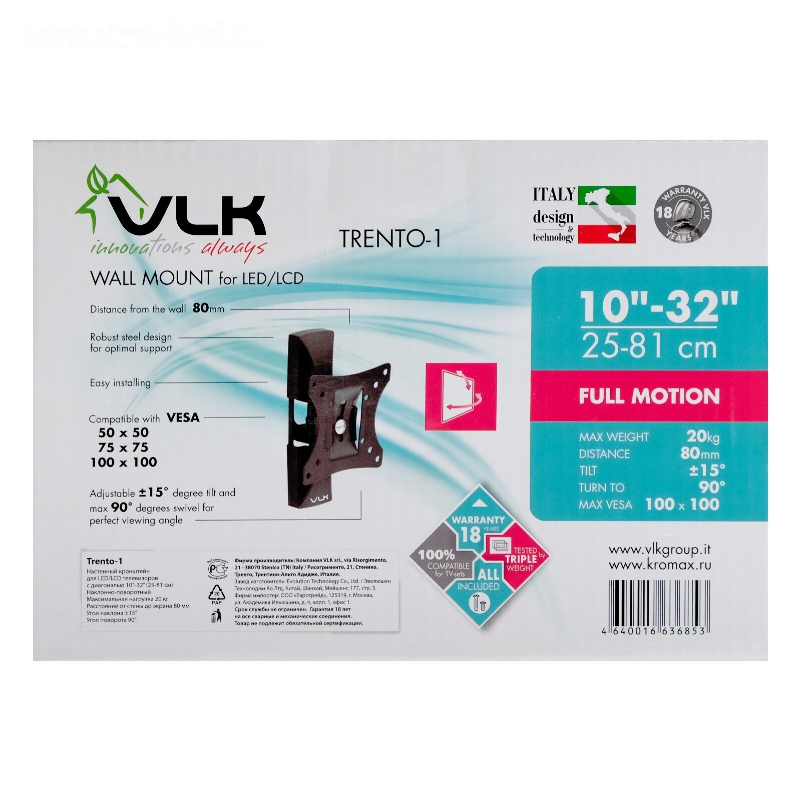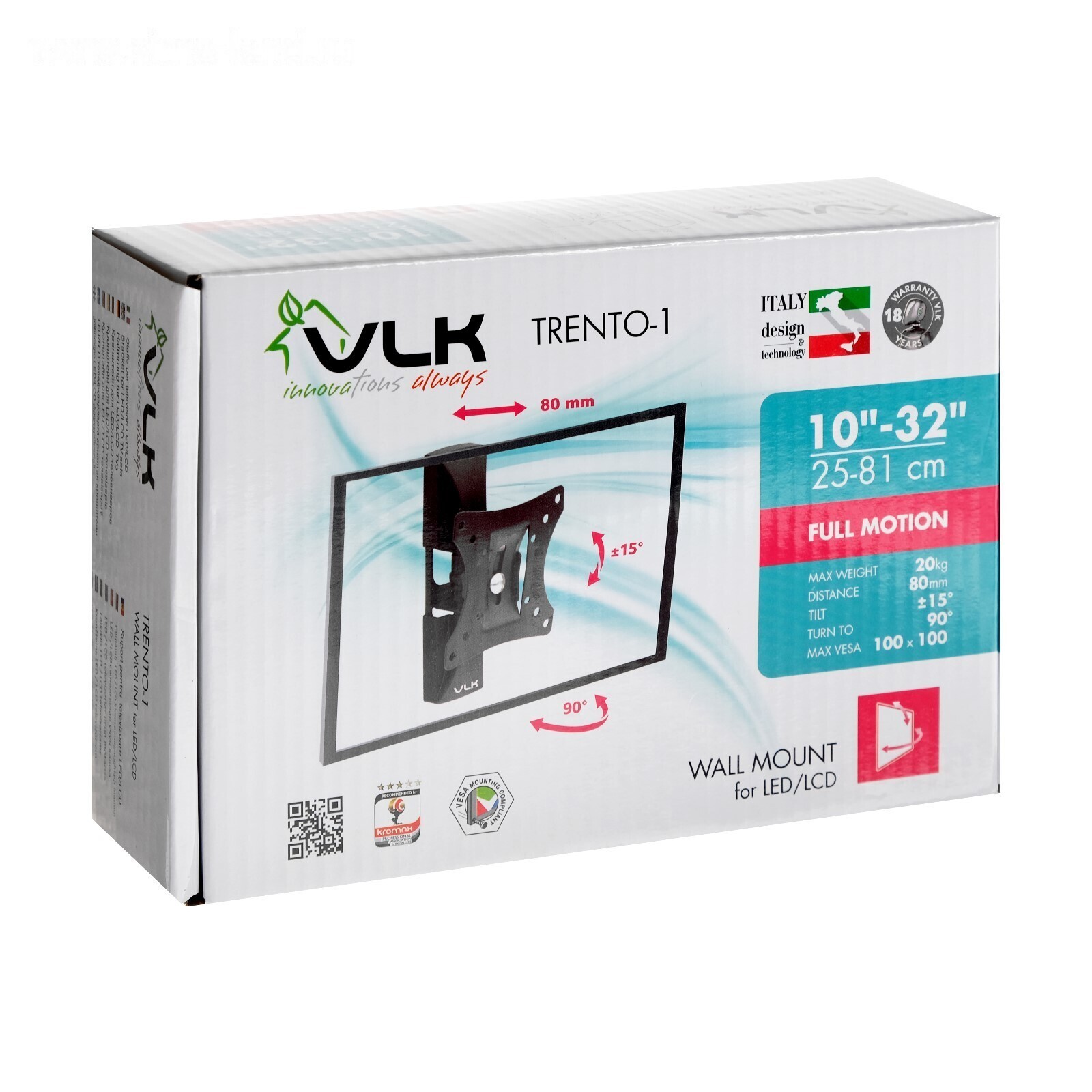 Кронштейн VLK TRENTO-1, для ТВ, наклонно-поворотный, 10-32", 80 мм от стены, черный