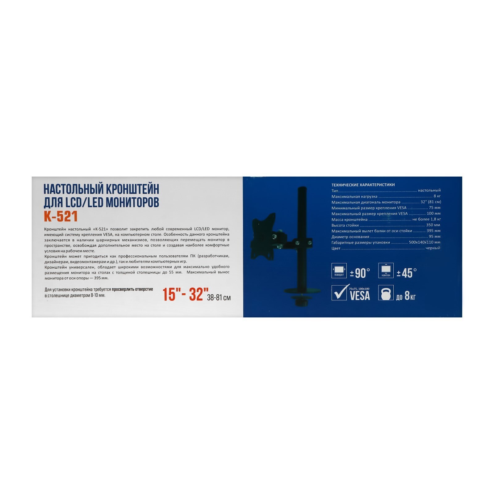 Кронштейн "РЭМО" К521, для монитора, 10"-32", до 8 кг, черный