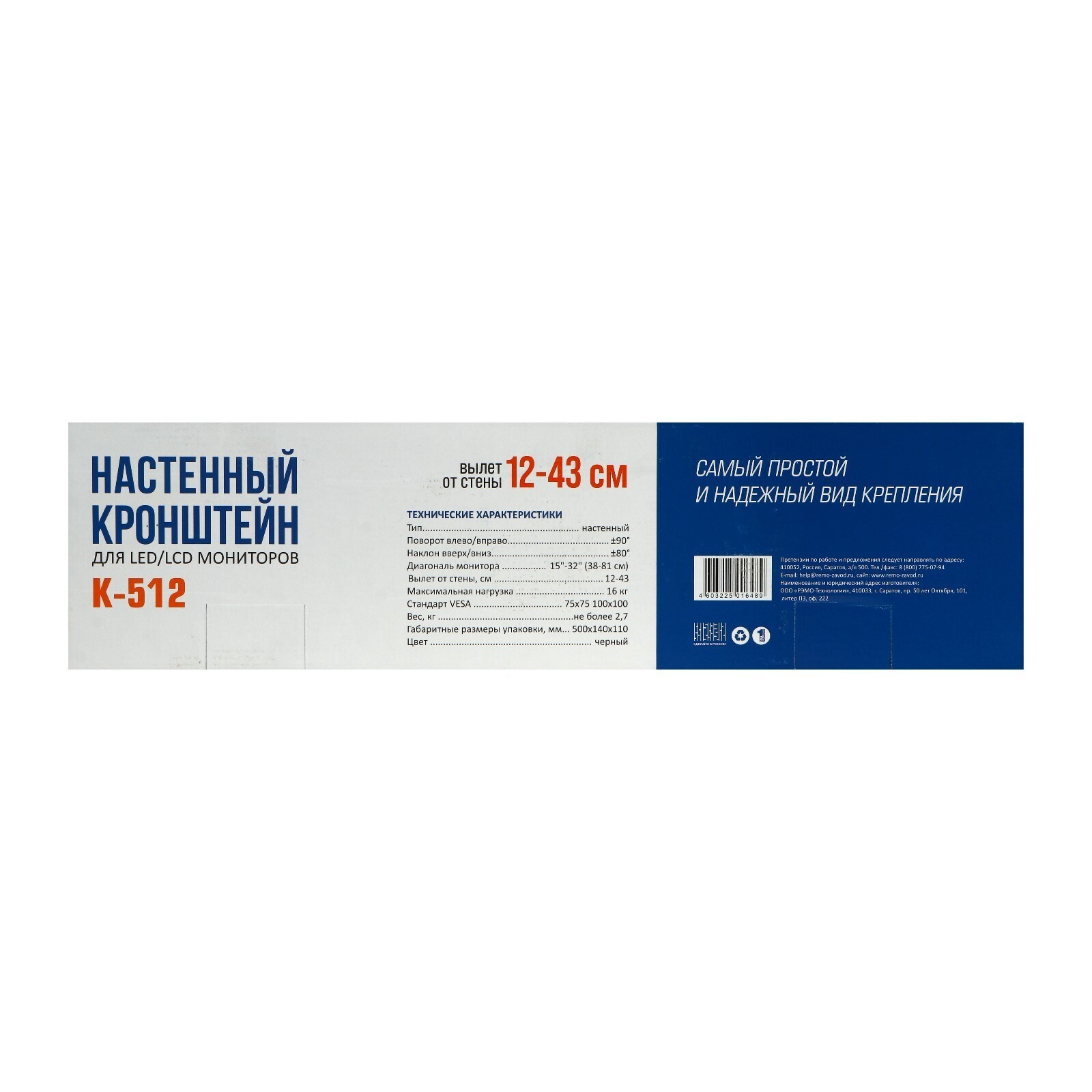 Кронштейн "РЭМО" К512, для монитора, 10"-32", 2 монитора до 16 кг, черный