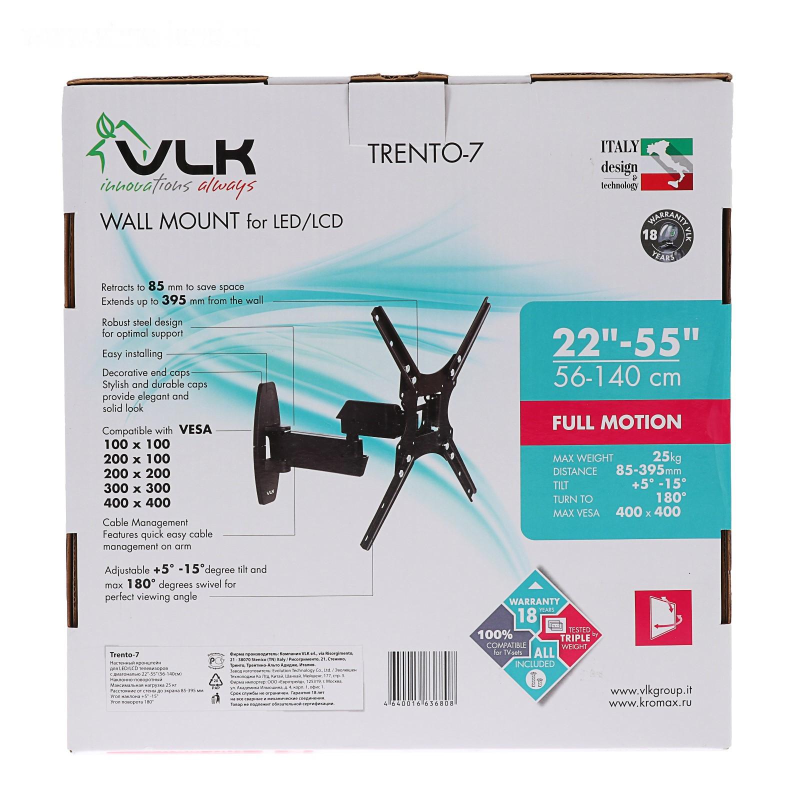Кронштейн VLK TRENTO-7, для ТВ, наклонно-поворотный, 22"-55", 85-395 мм от стены, черный