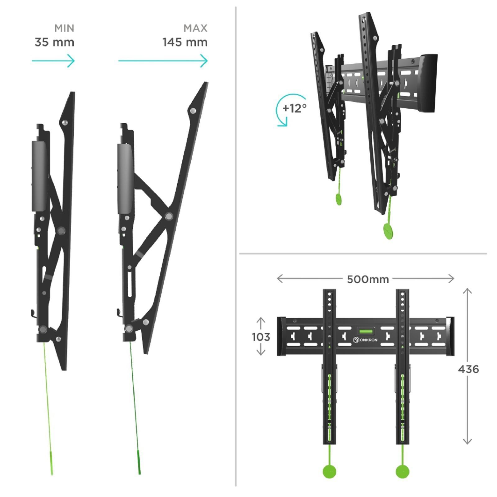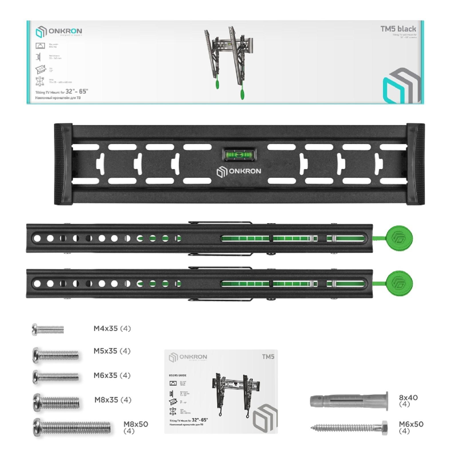Кронштейн ONKRON TM5, для ТВ, наклонный, 32"-65", 35-145 мм от стены, черный