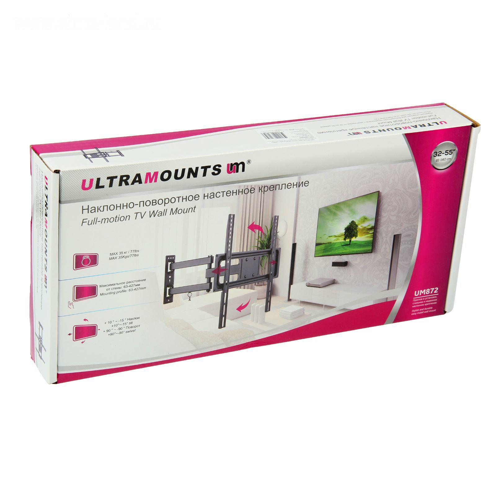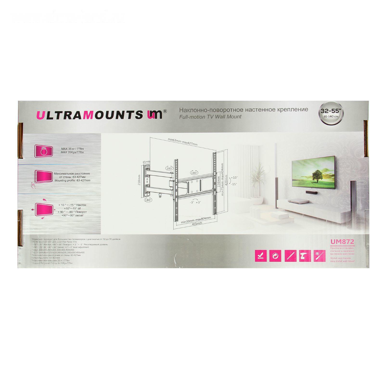 Кронштейн Ultramounts UM872, для ТВ, наклонно-поворотный, 32-55", 63-427 мм от стены, черный