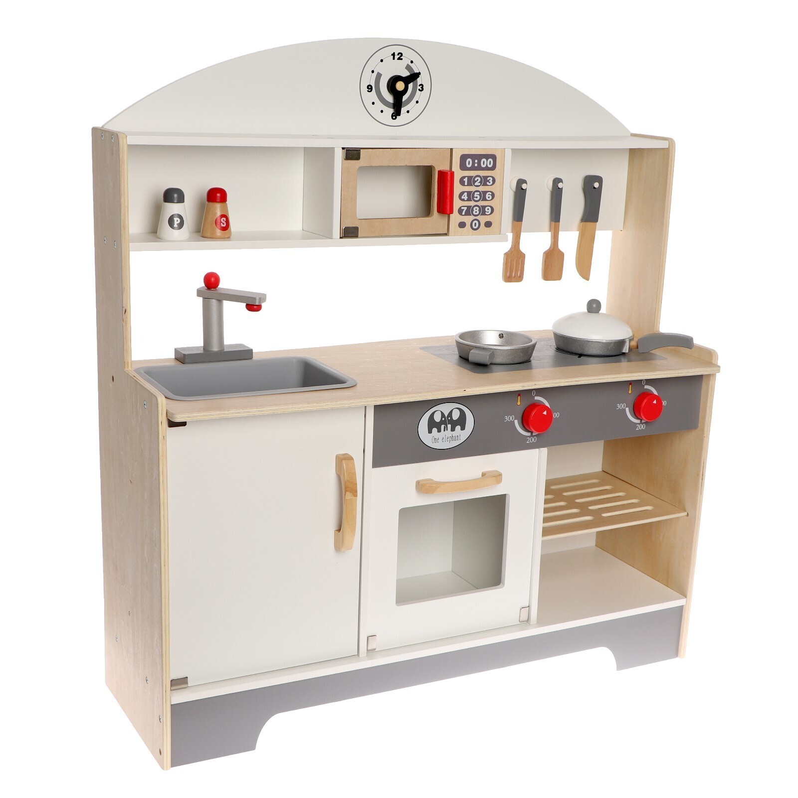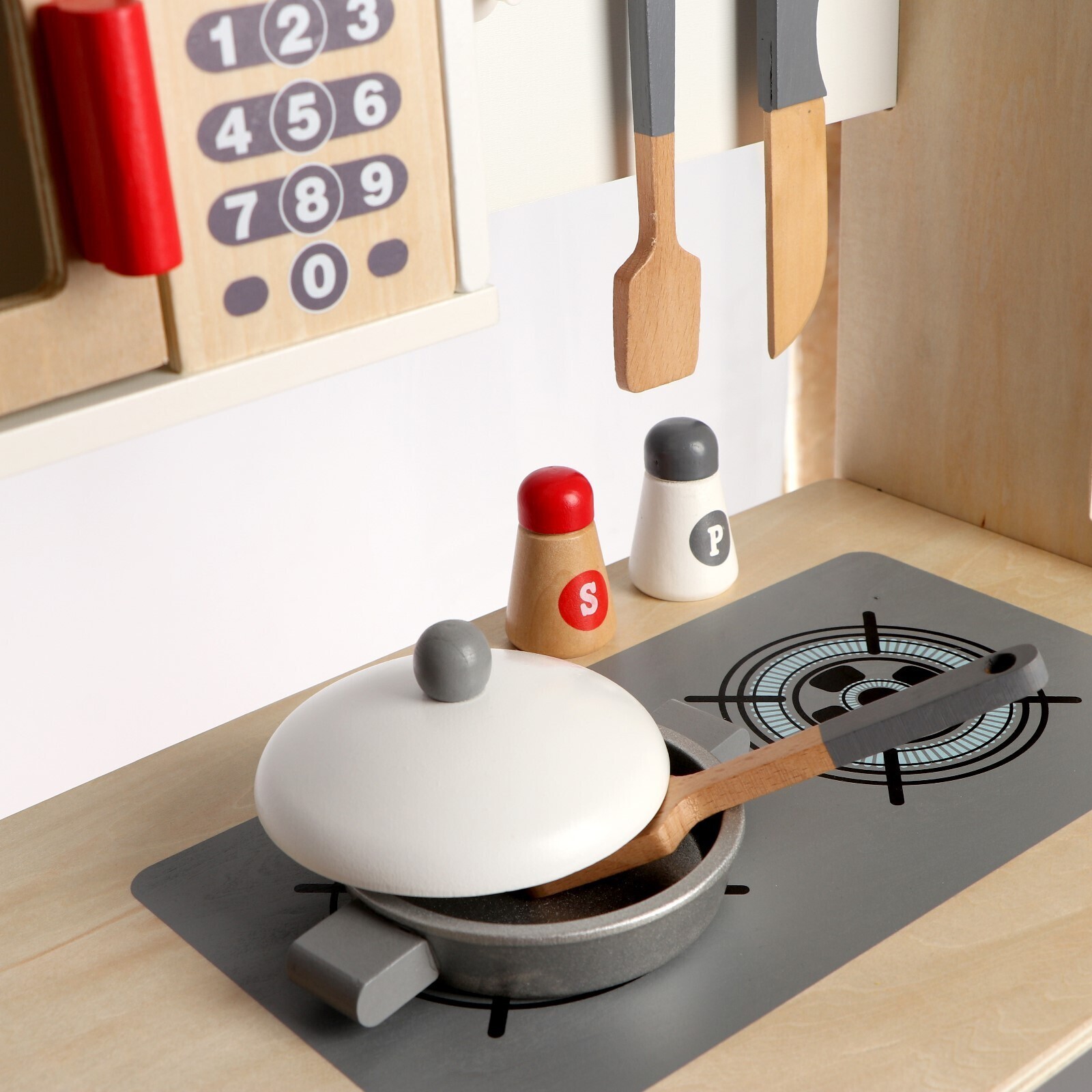Игровой модуль-кухня — это яркая имитация аксессуаров для юных поваров, подходит для сюжетных игр. Ребёнок откроет свой ресторан или накормит кукольную семью. Кухонная утварь разработана специально для детских ручек, поэтому малышу будет удобно и легко ей пользоваться.