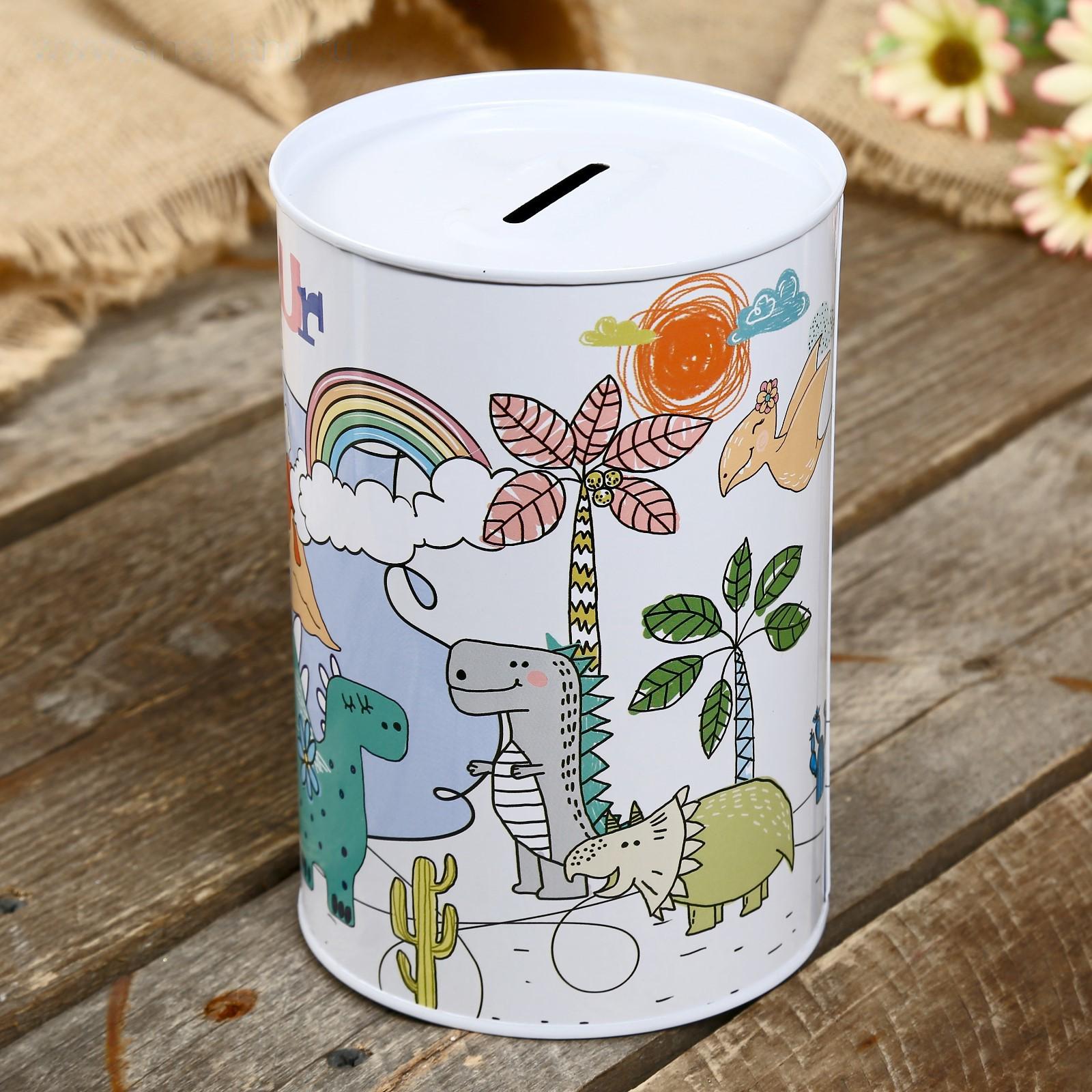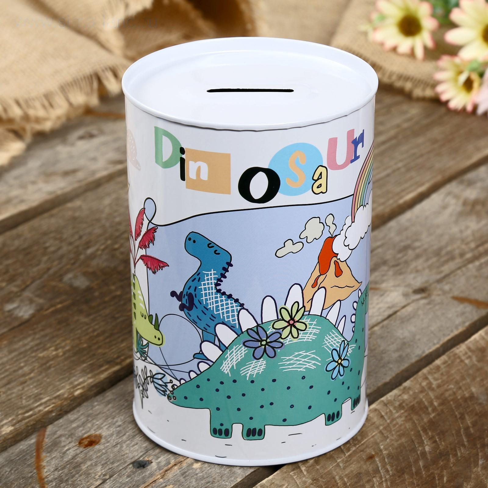 Копилка металл банка "Динозаврики" МИКС 15х10х10 см