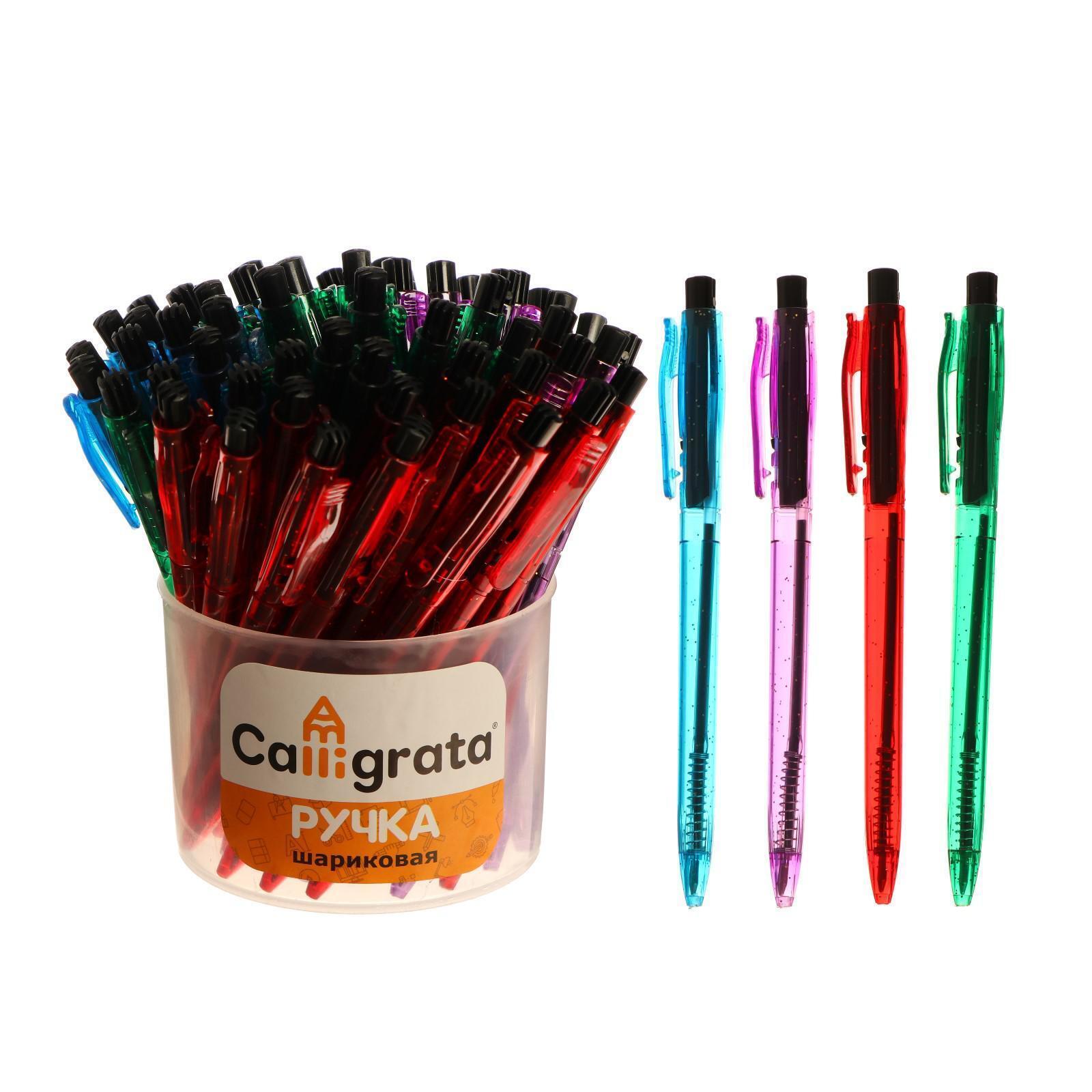 Ручка шариковая автоматическая прозрачный тонированный корпус, стержень синий, МИКС