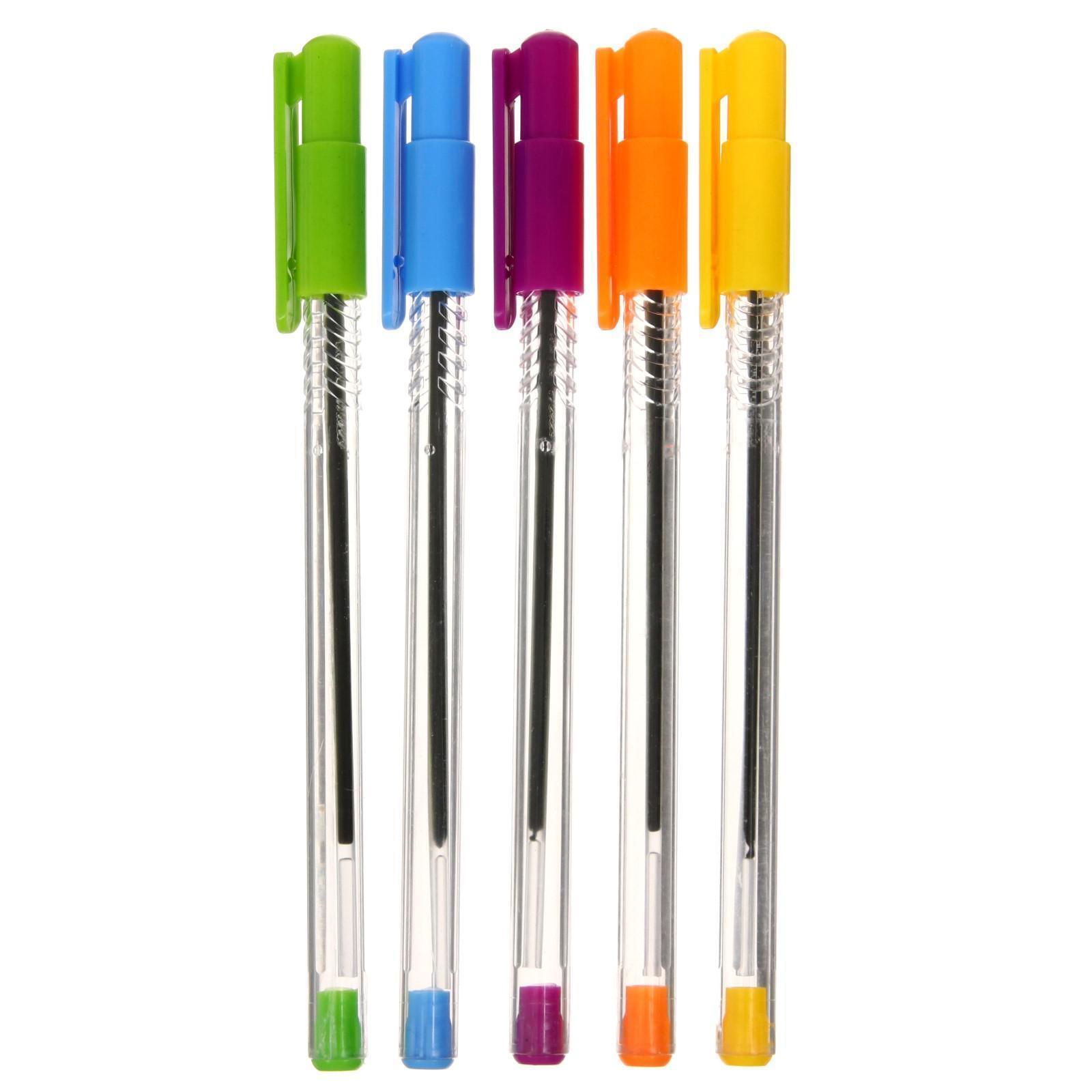 Ручка шариковая 0.7 мм, стержень синий, корпус прозрачный с цветными колпачками, МИКС
