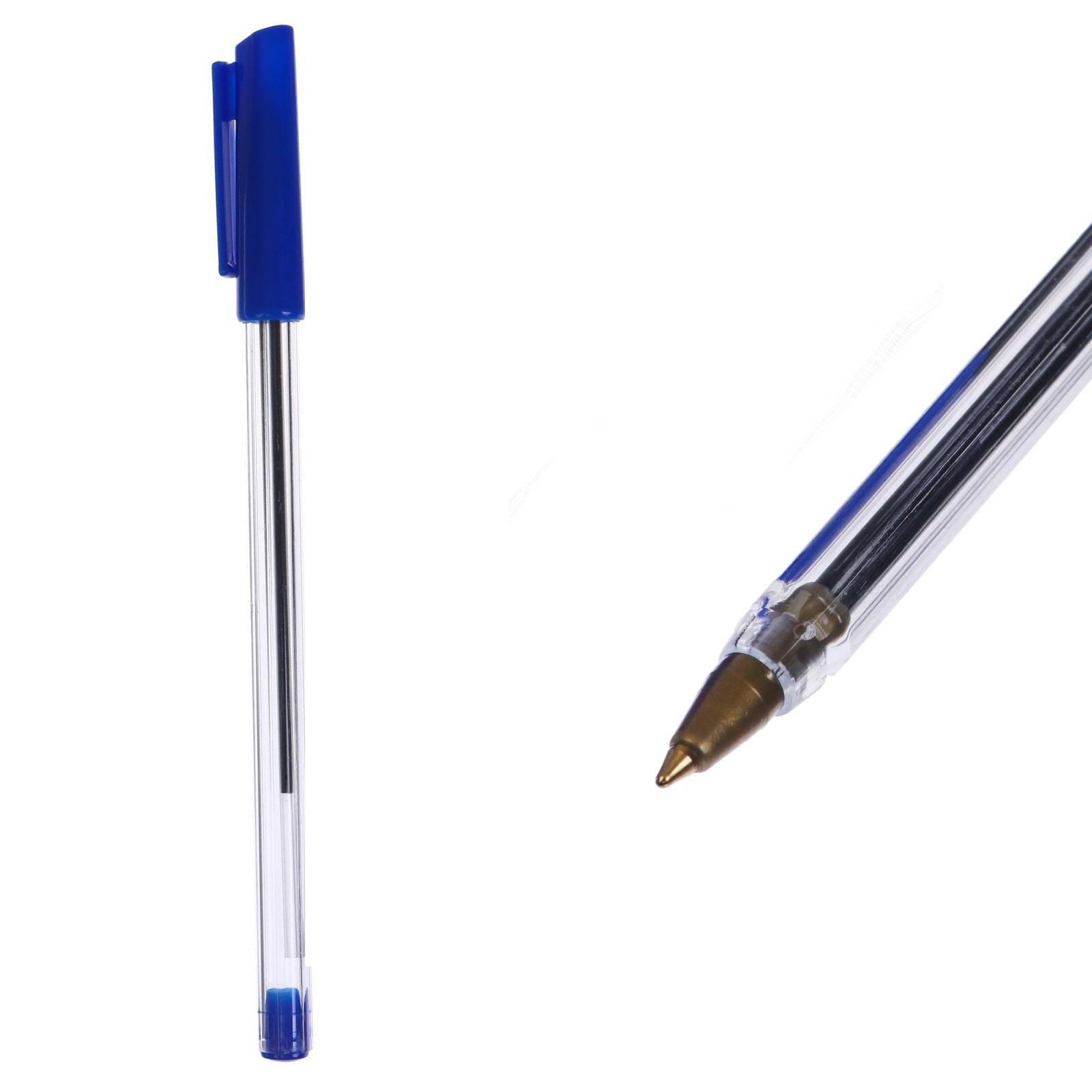 Ручка шариковая 0,7 мм, стержень синий, корпус прозрачный с синим колпачком