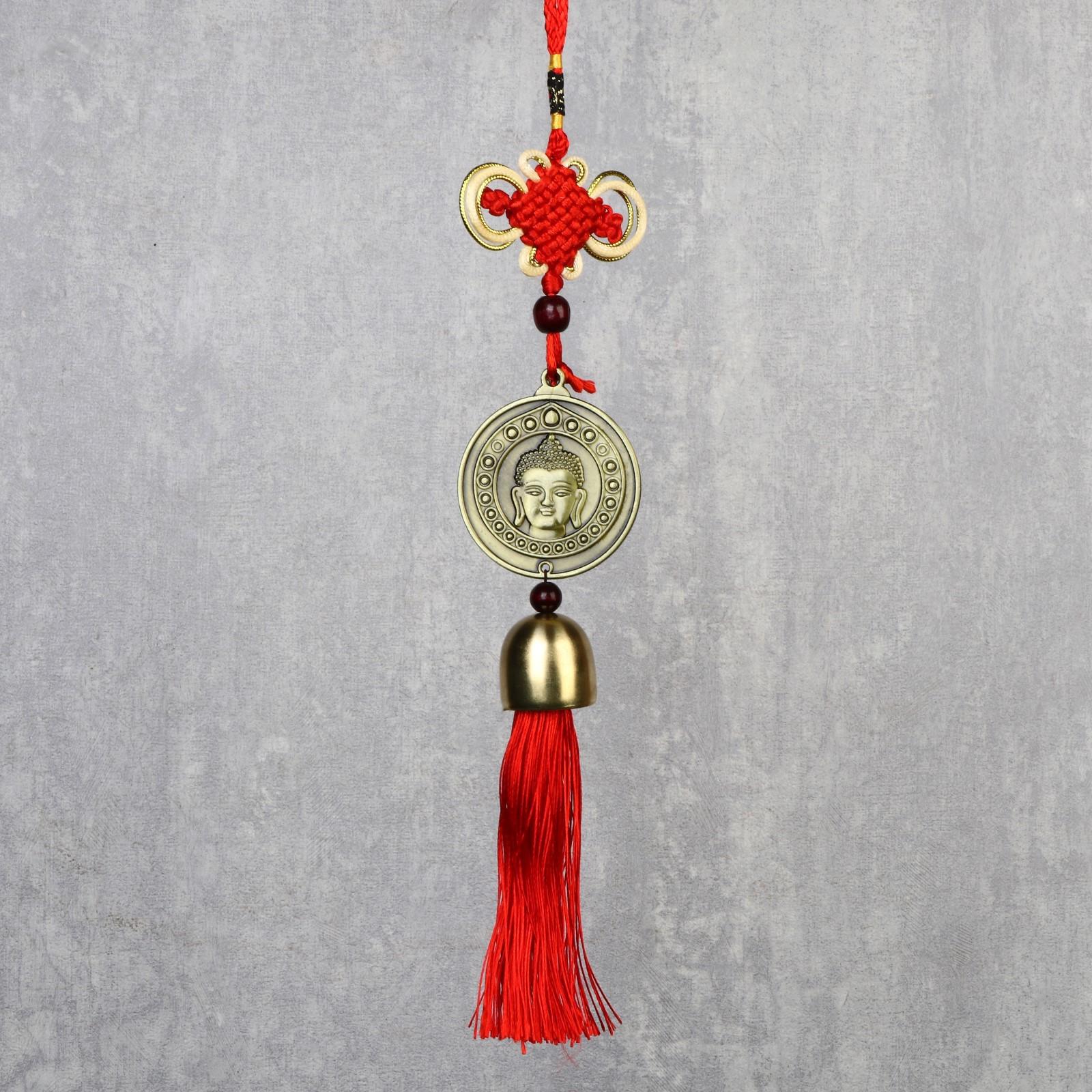 Подвеска металл, текстиль "Будда на монете" 37 см