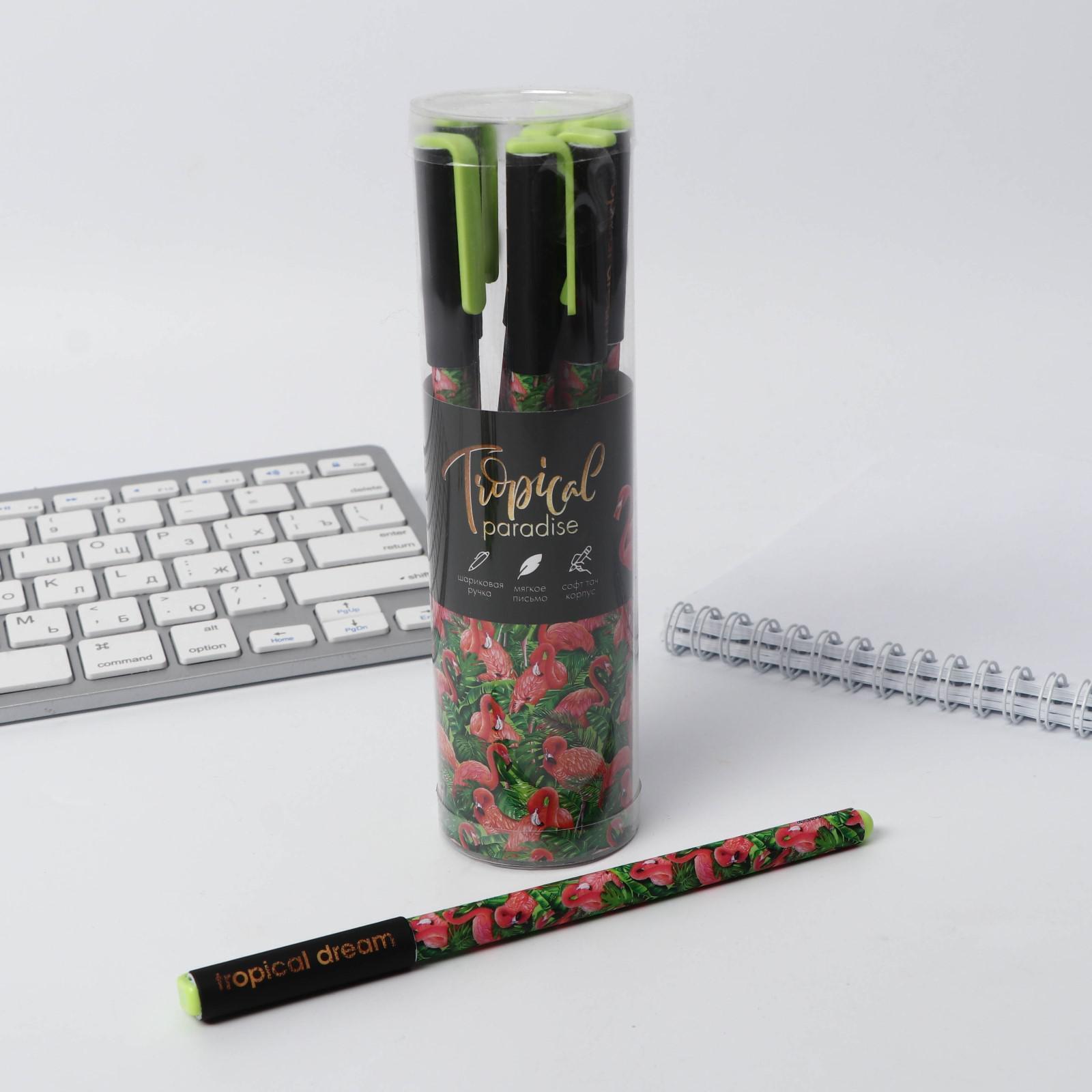 Ручка с колпачком и нанесением soft-touch Tropical, синяя паста, 0,7 мм, цена за 1 шт
