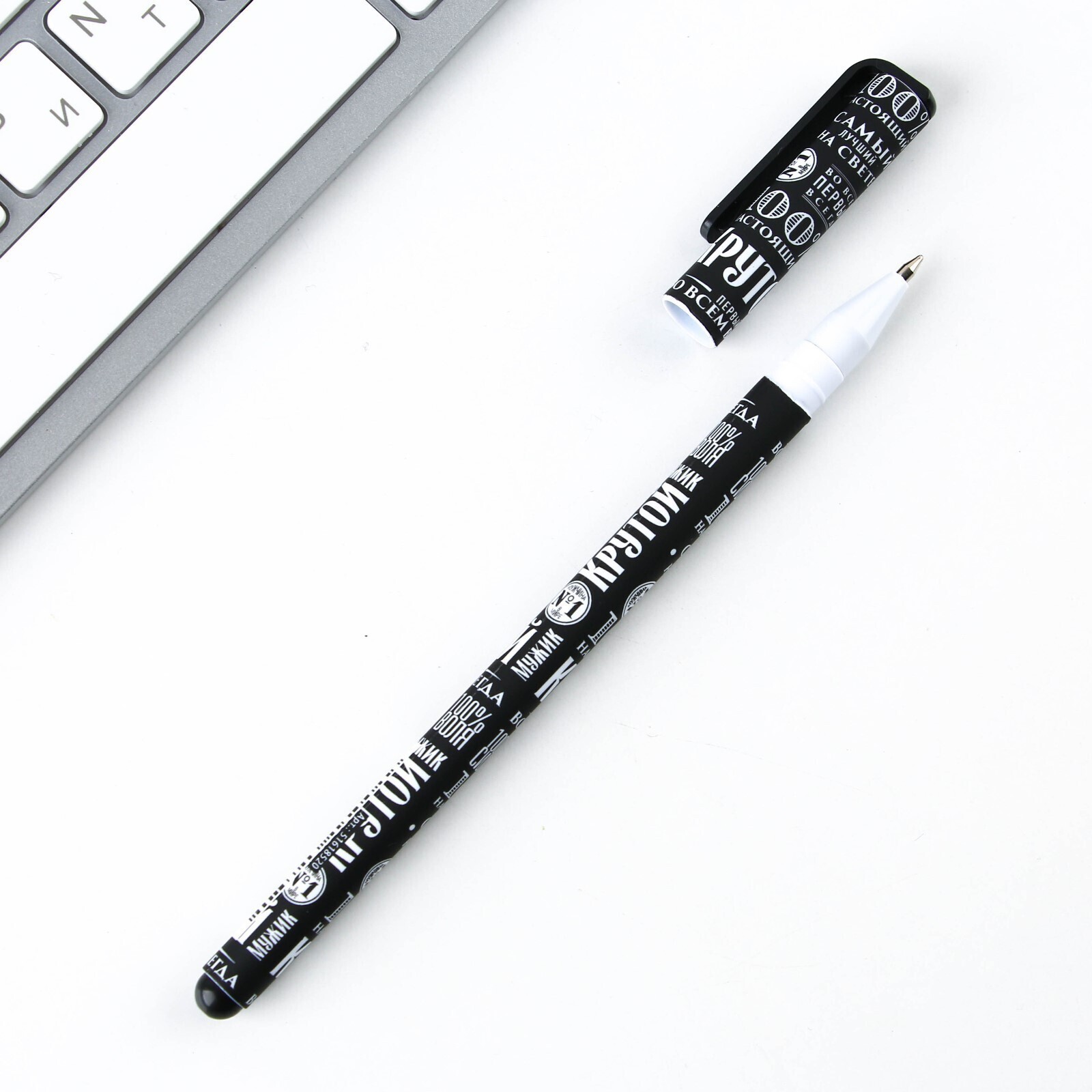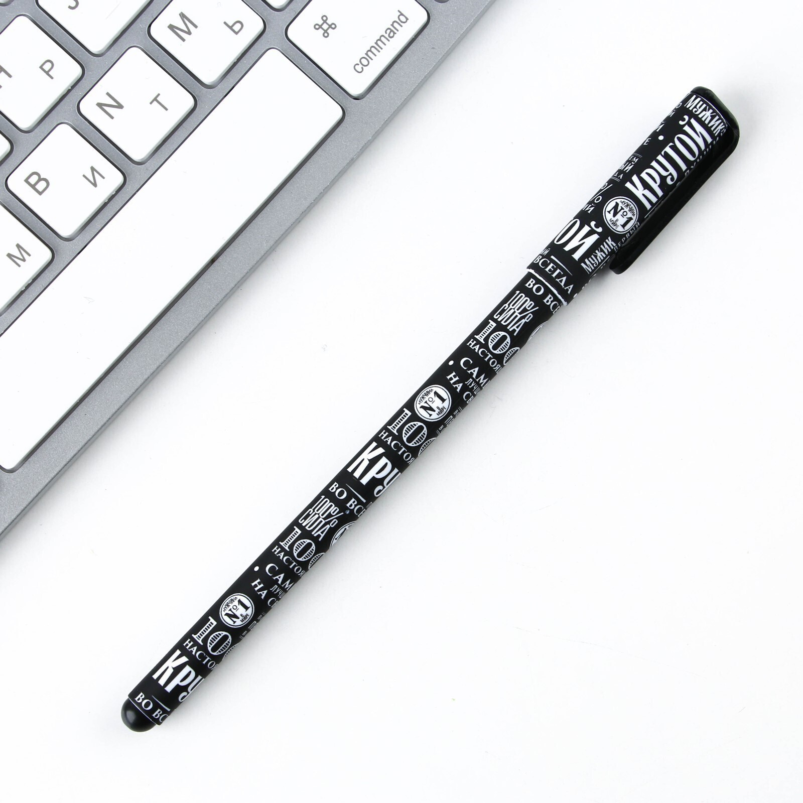 Ручка с колпачком и нанесением soft-touch «100% мужчина», синяя паста, 0,7 мм, цена за 1 шт