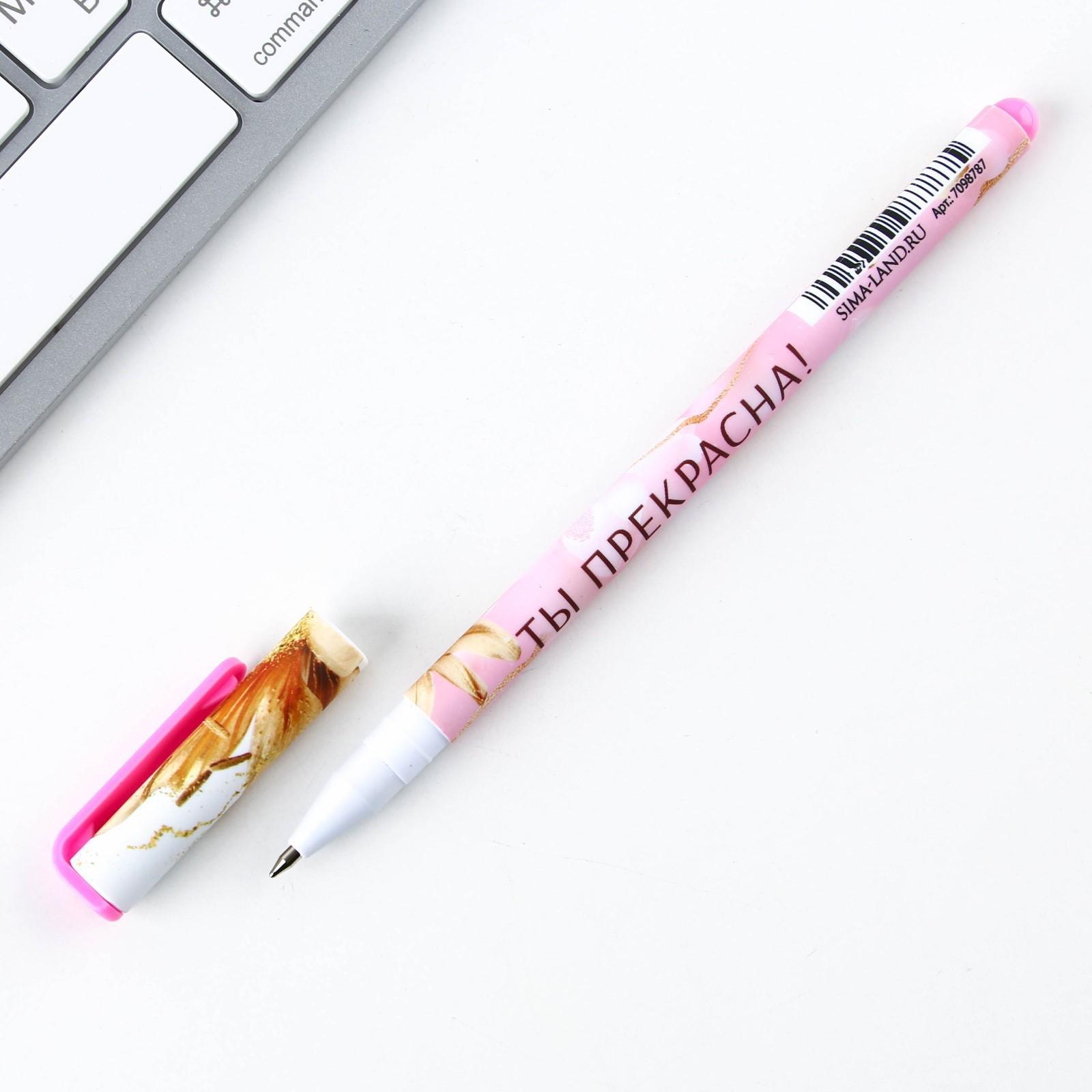 Ручка пластик с колпачком софт-тач «Ты прекрасна!», в тубусе, синяя паста, 0,7 мм