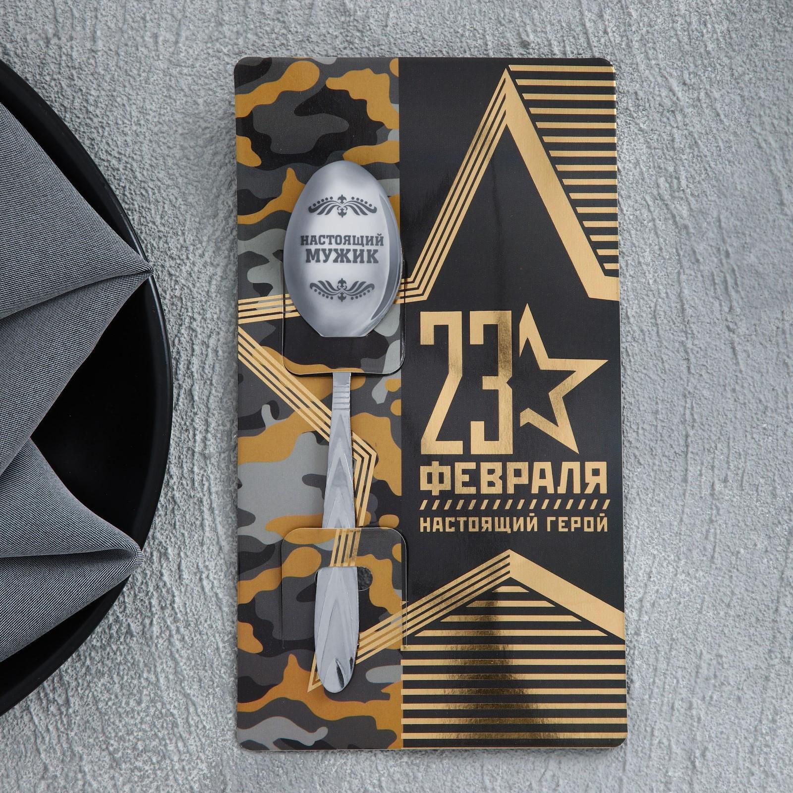 Ложка подарочная на открытке «23 февраля», 3 х 14 см