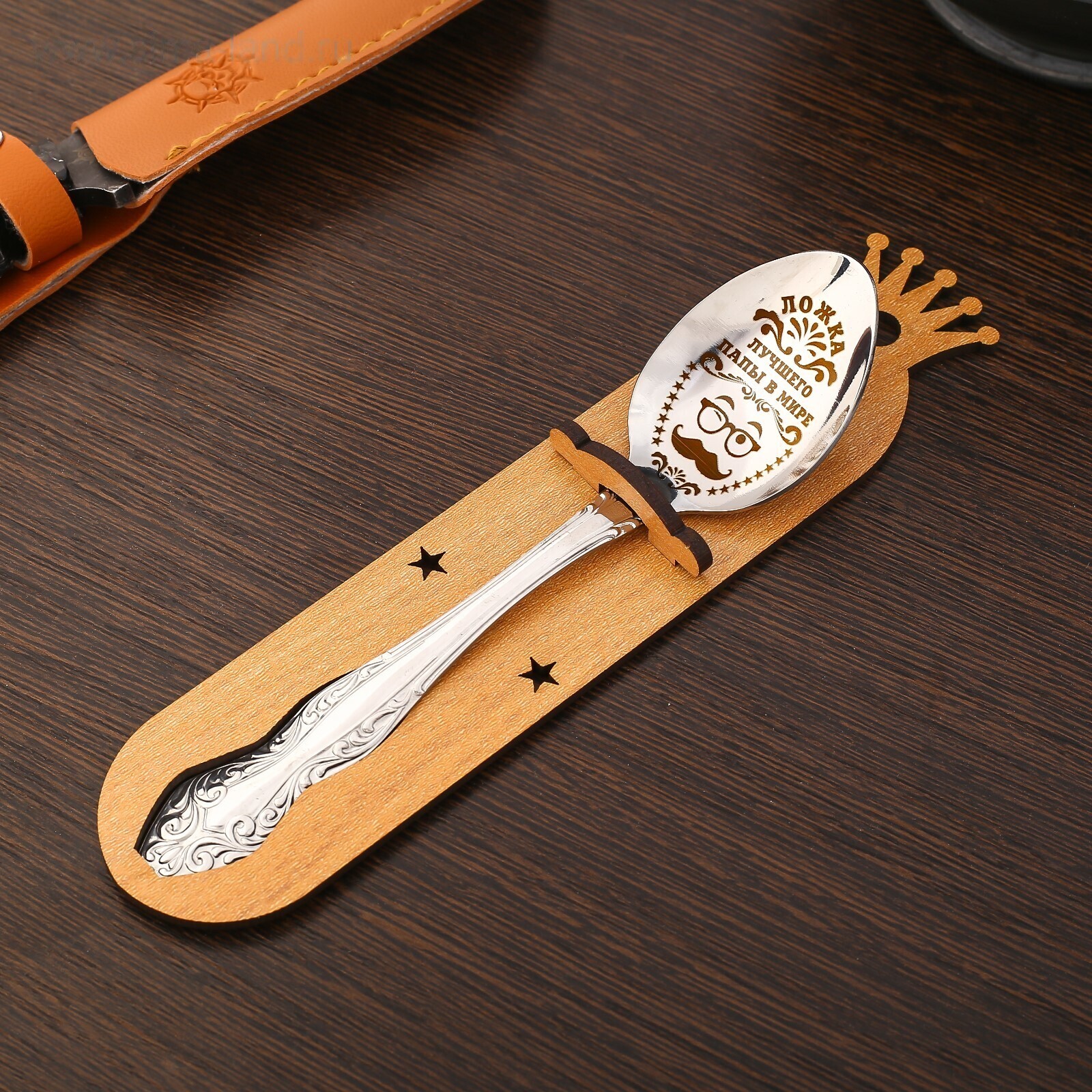 Ложка чайная с гравировкой «Лучшего папы в мире», h=14см.