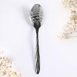 Ложка с лазерной гравировкой и изящной рукояткой преподносится на красочной открытке. На оборотной стороне изделия специально отведено место для подписи: кому и от кого был вручён подарок.