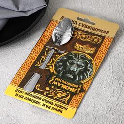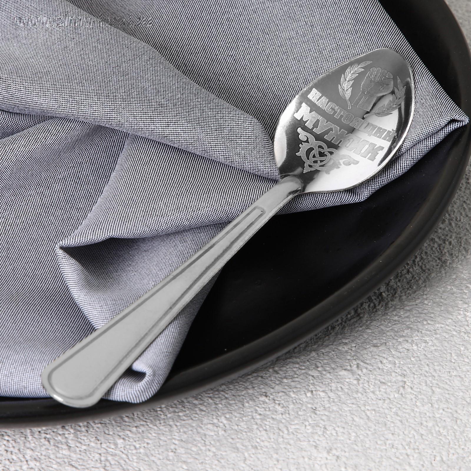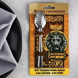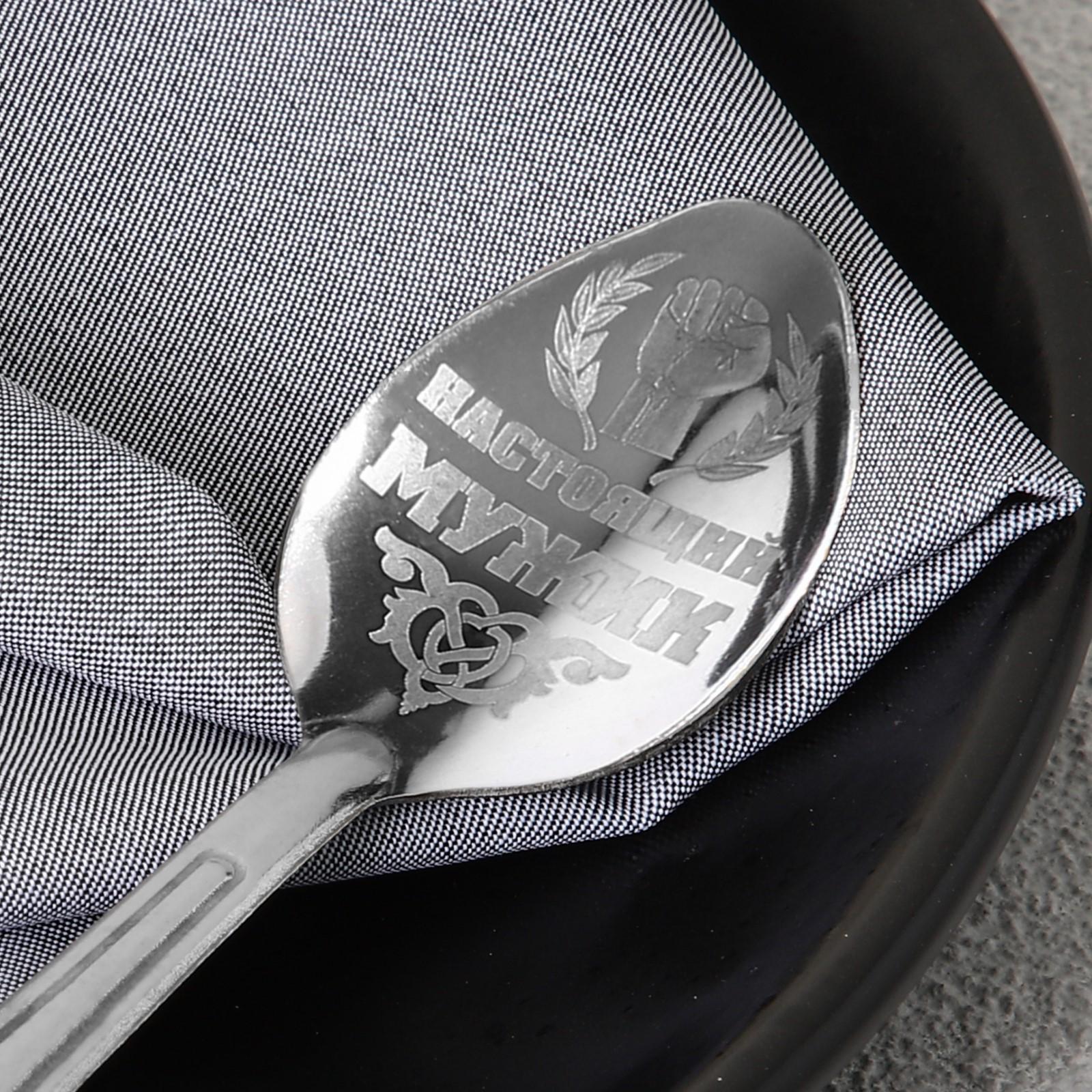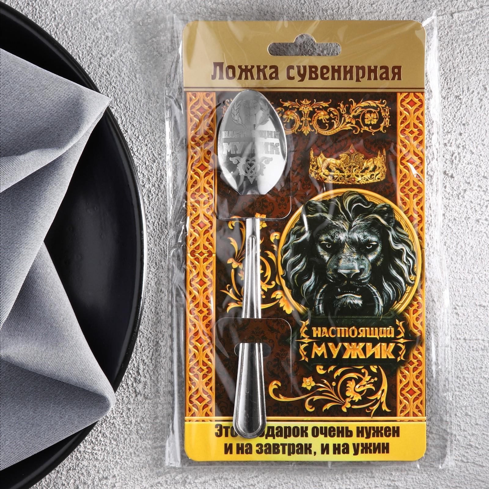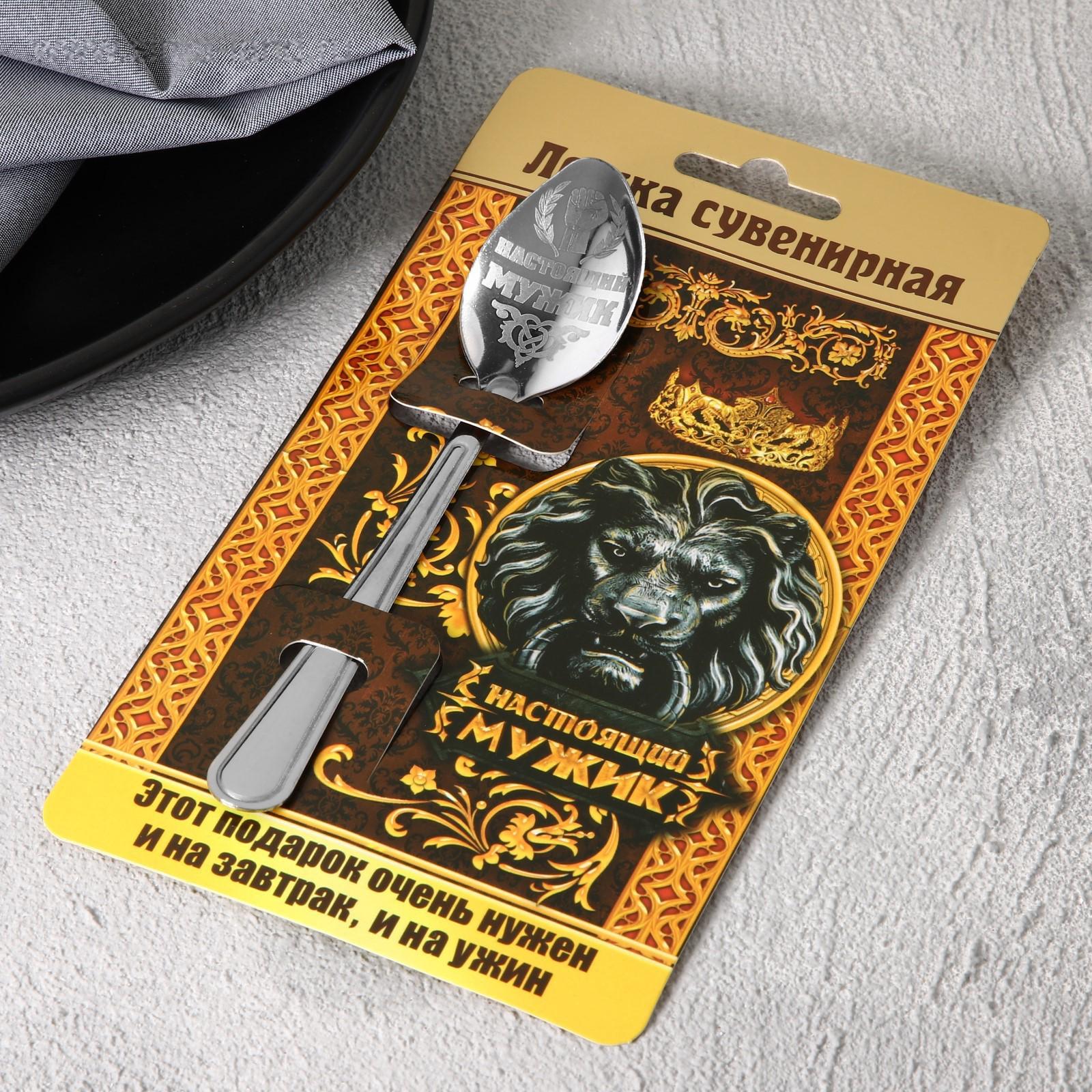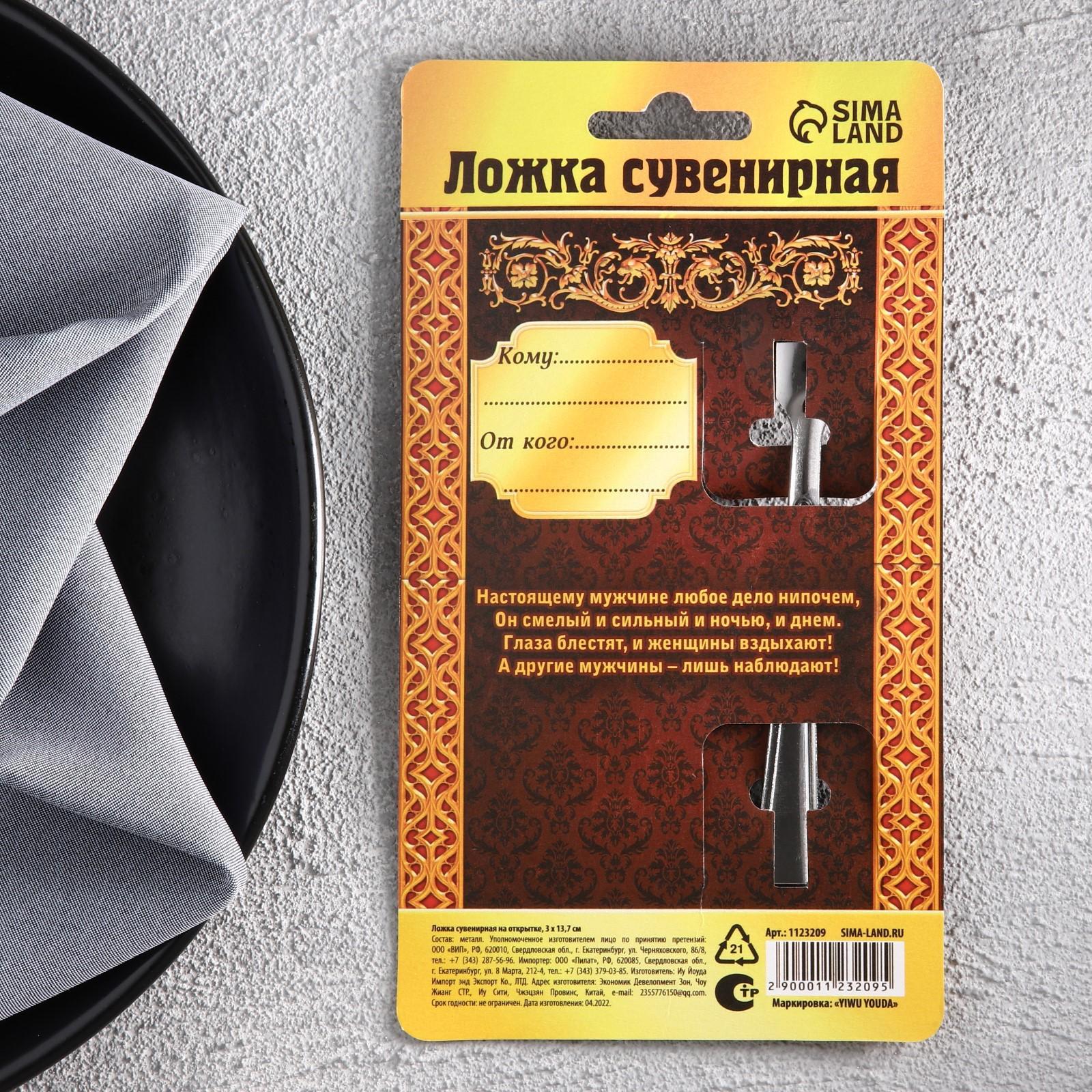 Ложка с гравировкой сувенирная на открытке «Настоящий мужик»