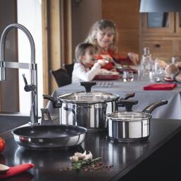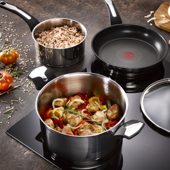 Набор посуды Tefal Emotion из 11 предметов E300SB74 Особенности: Производитель: TefalТип набора: Смешанные наборыМатериал: Нержавеющая стальТип ручки: ФиксированнаяСовместимость с плитами: Все, включая индукциюСегменты: Практичные решенияВнешнее покрытие: Нержавеющая стальМатериал ручки: БакелитИндикатор нагрева: Thermo-Signal на сковородеФирменная упаковка: ЕстьМожно мыть в посудомоечной машине: ДаСтрана производителя: КитайСерия: EmotionВес, кг: 1.00Размеры (ШxГxВ), см: 20.00 x 20.00 x 20.00