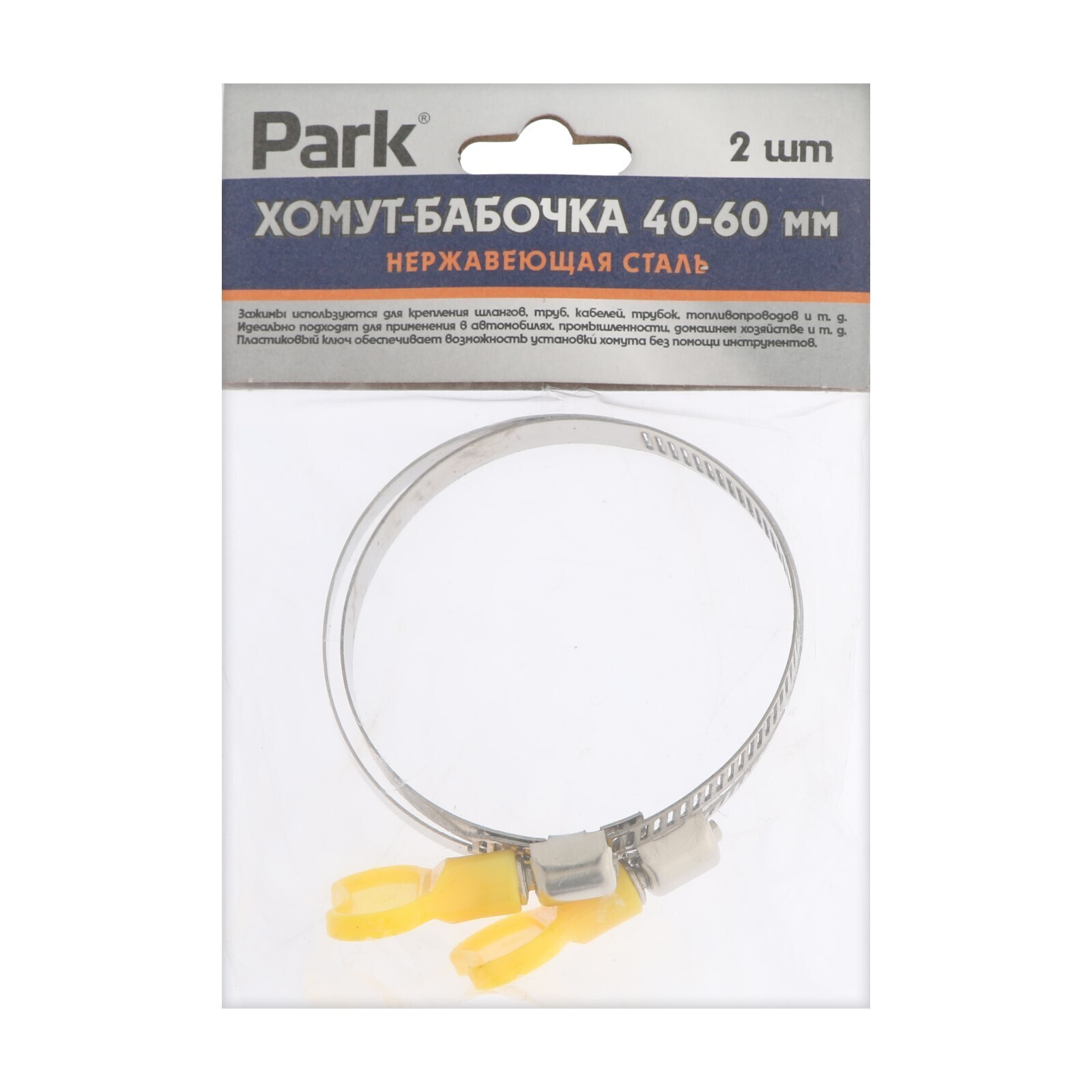 Хомут червячный с ключом Park, диаметр 40-60 мм, ширина 8 мм, нержавеющая сталь, 2 шт.