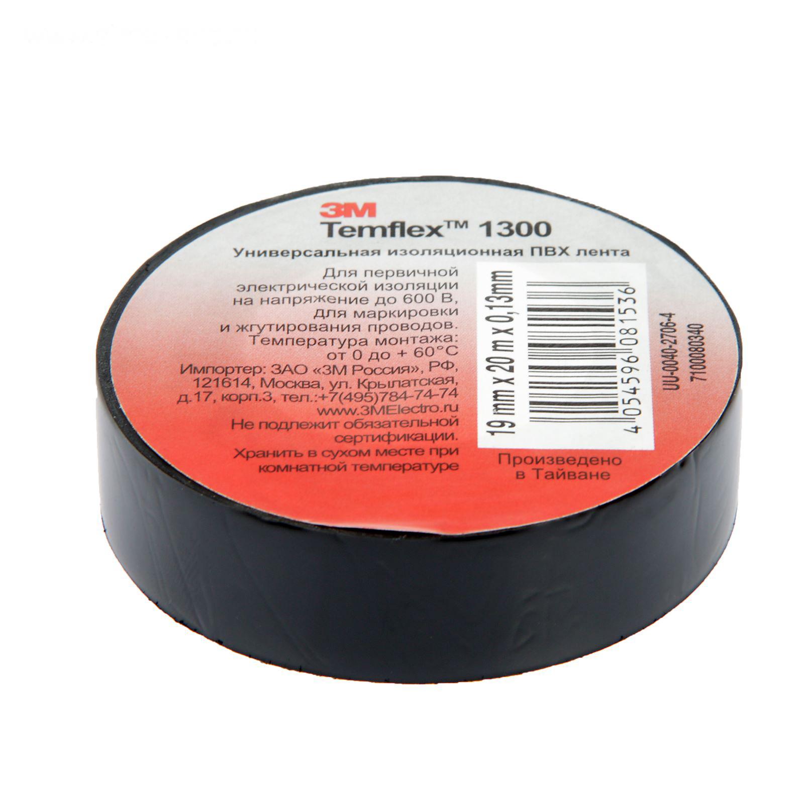 Изолента 3М Temflex 1300, ПВХ, 19 мм x 20 м, 130 мкм, черная