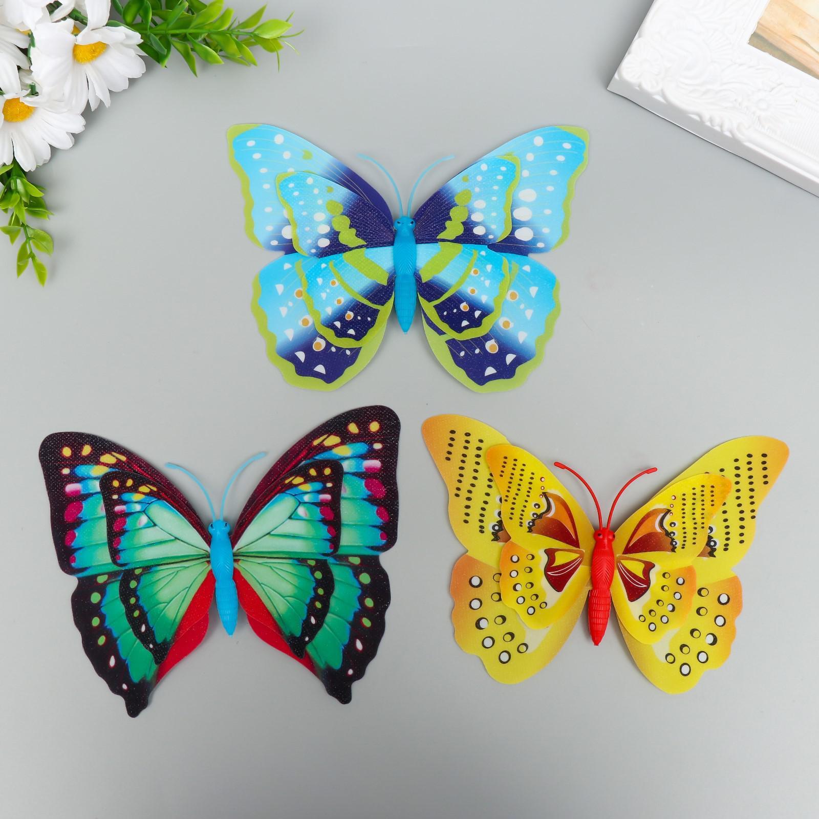 Магнит пластик "Бабочка блестящая" двойные крылышки, МИКС 15х10 см