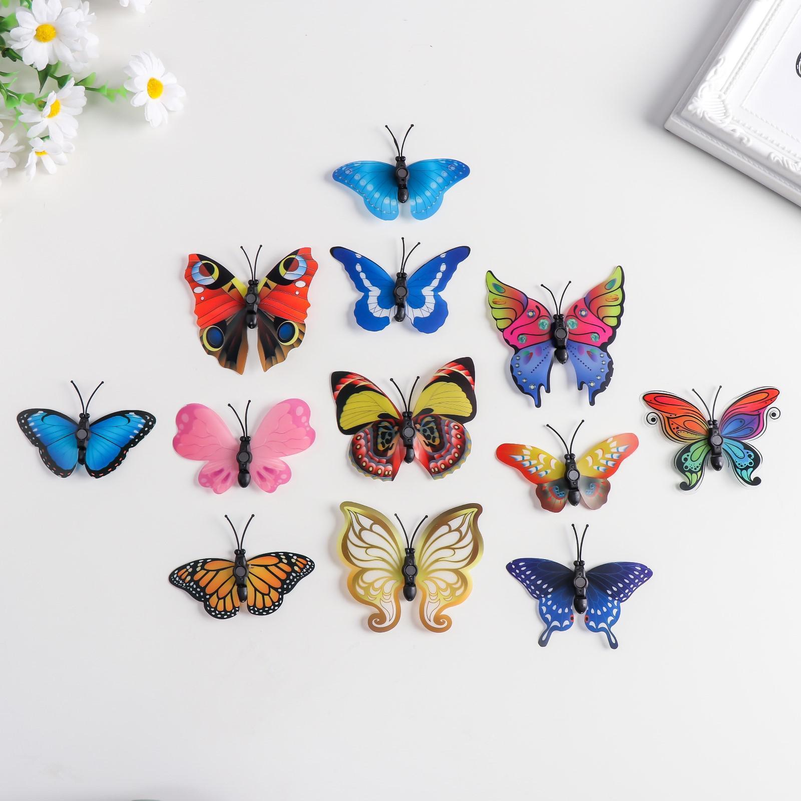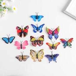 Магнит пластик "Бабочки блёстки" набор 12 шт МИКС