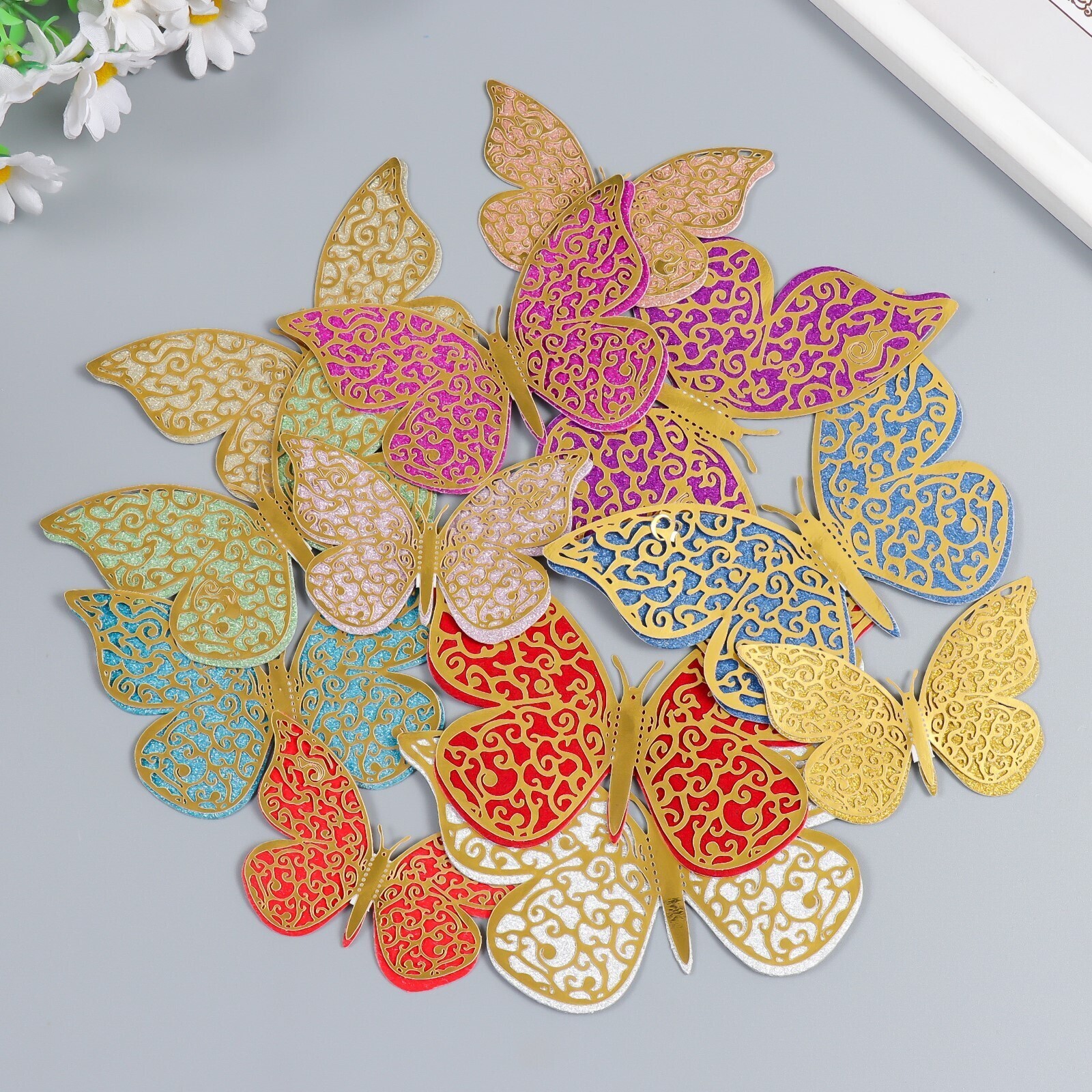 Магнит пластик "Бабочка с ажурными крыльями" набор 12 шт МИКС 12,10,8,6,4 см