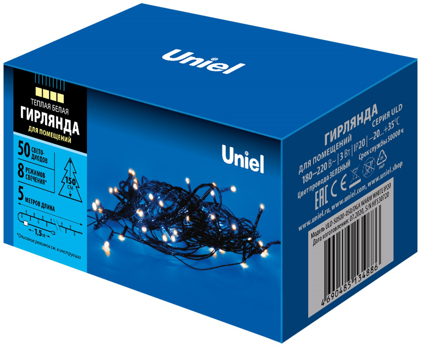 Гирлянда cветодиодная Uniel ULD-S0500-050/DGA Warm White IP20